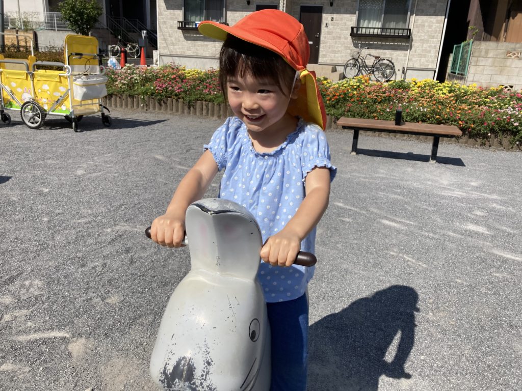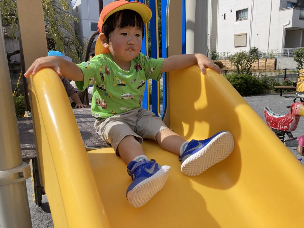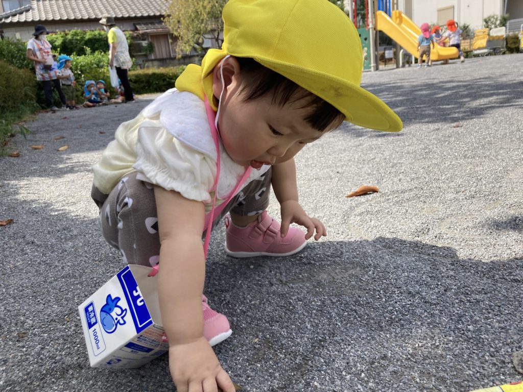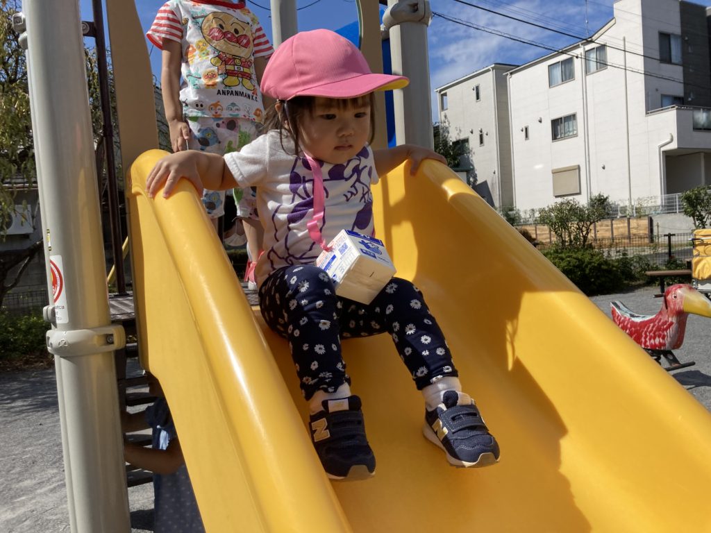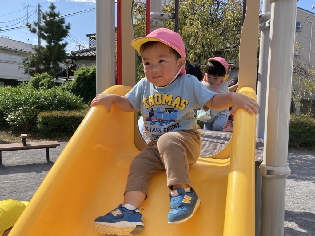 滑り台や、スプリング遊具に乗ってユラユラ🎶落ち葉拾いもしました🍂