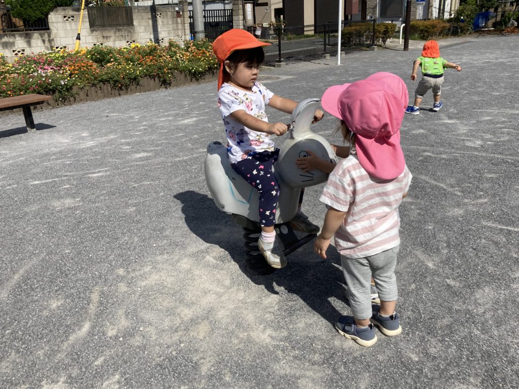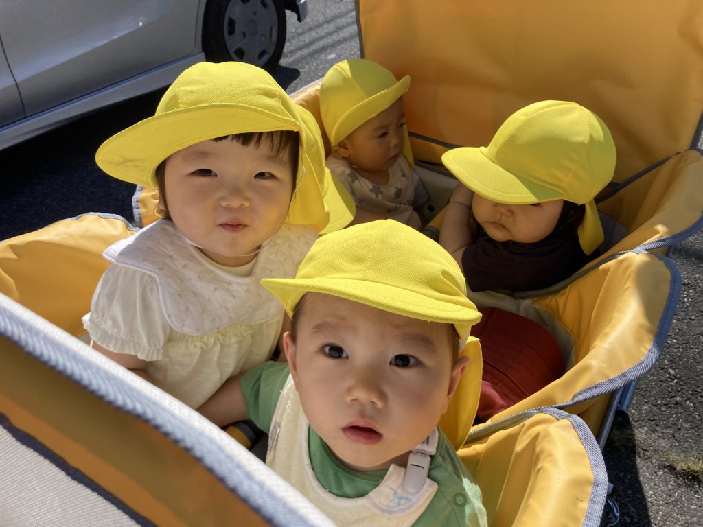 らっこ組・ぺんぎん組は、バギーに乗って。あざらし組はお友だちと手を繋いで…