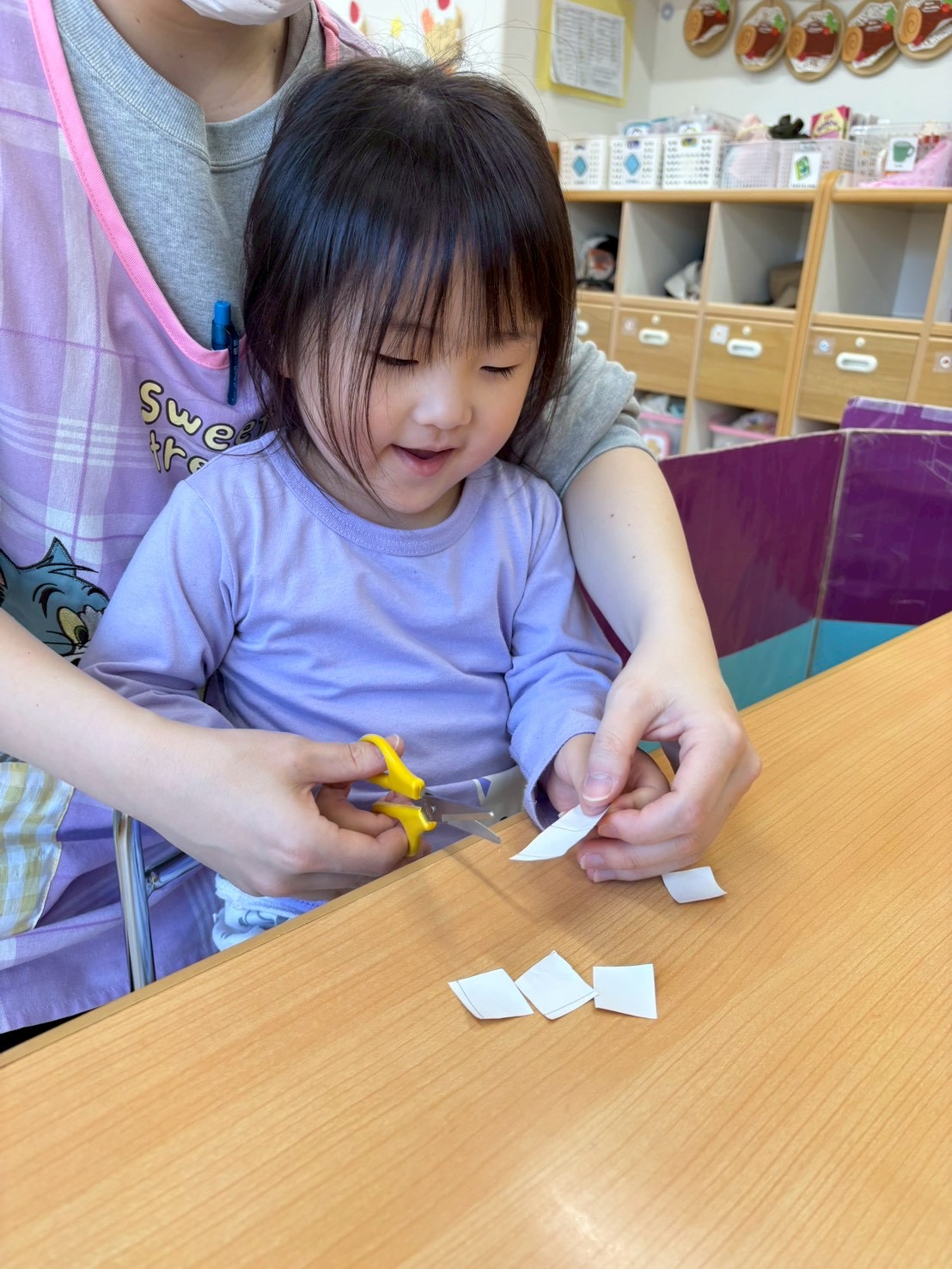 あざらし組のお友だちは、初めてのはさみに挑戦。 先生と一緒にやってみよう! 細い折り紙を 一回チョキン✂️ 真 […]