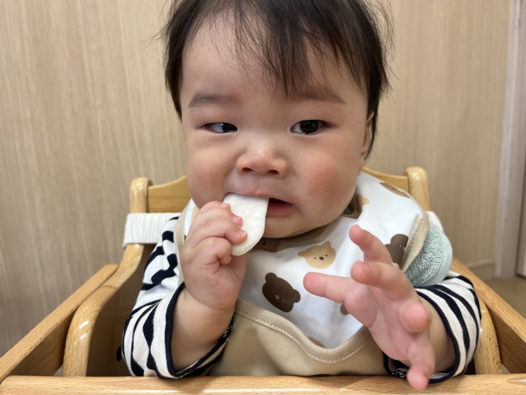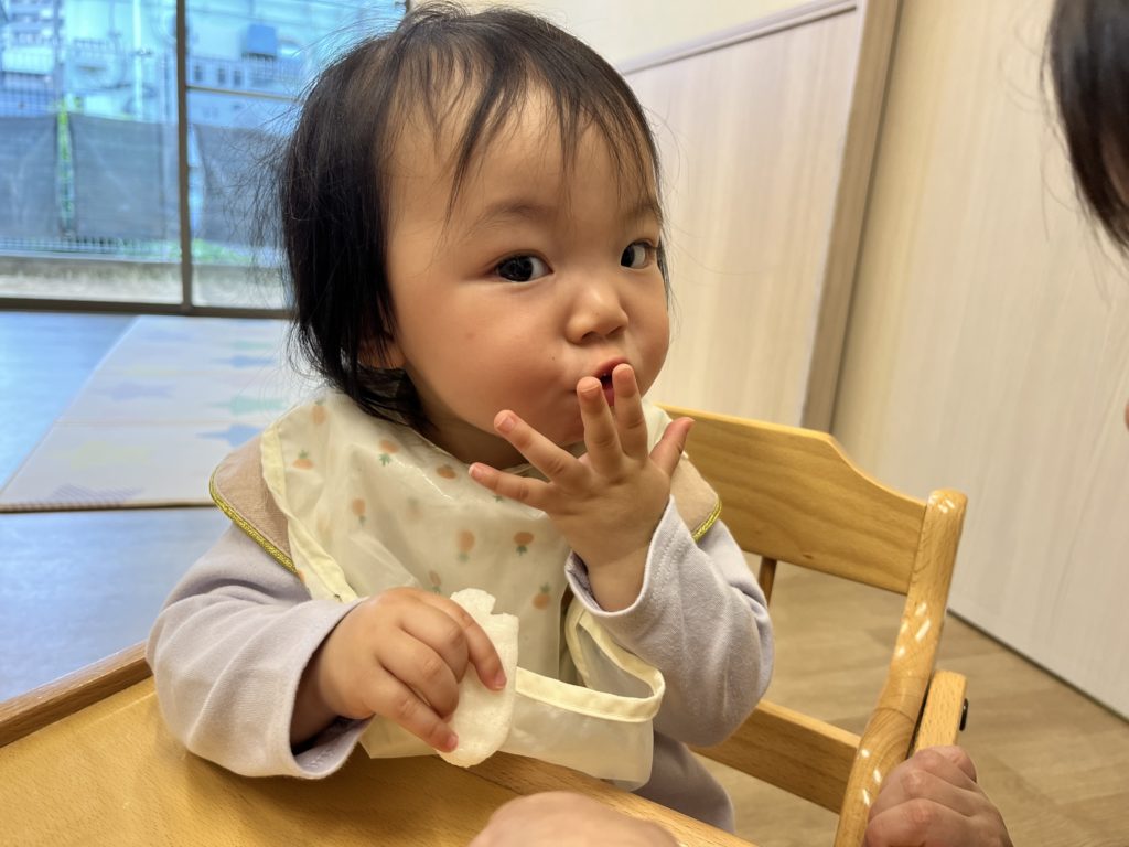 らっこ組のお友だち、午後のおやつも「美味しいね!」