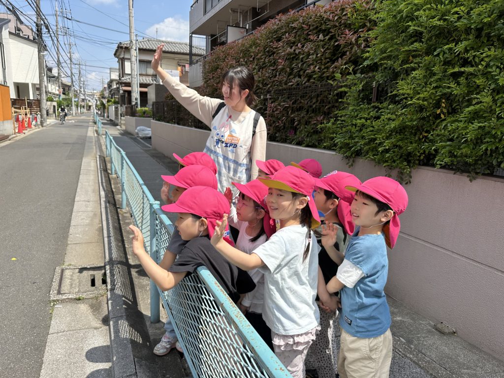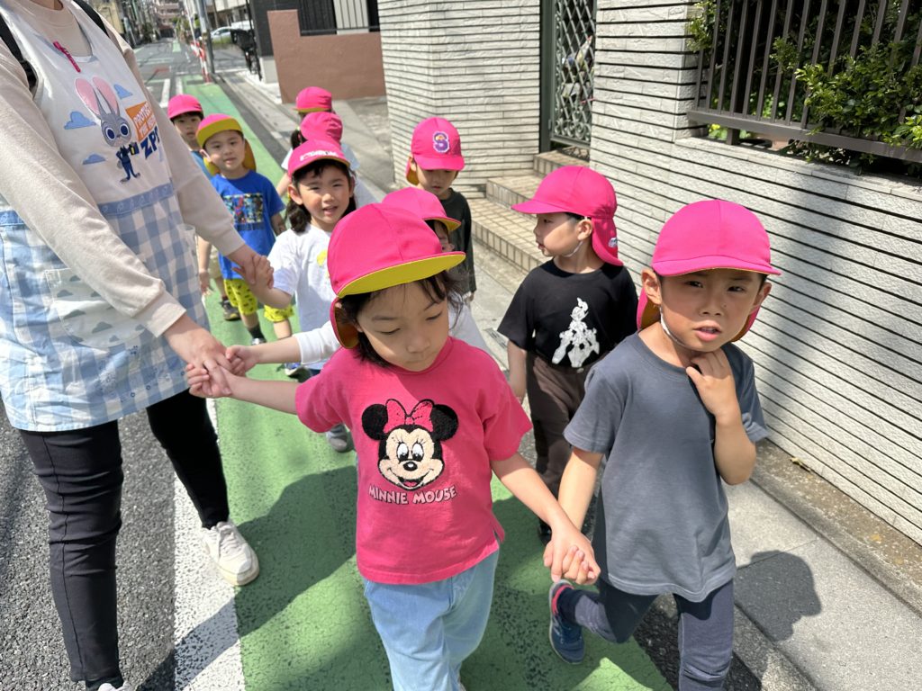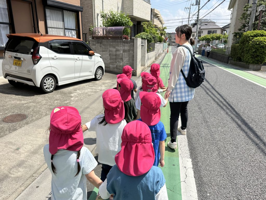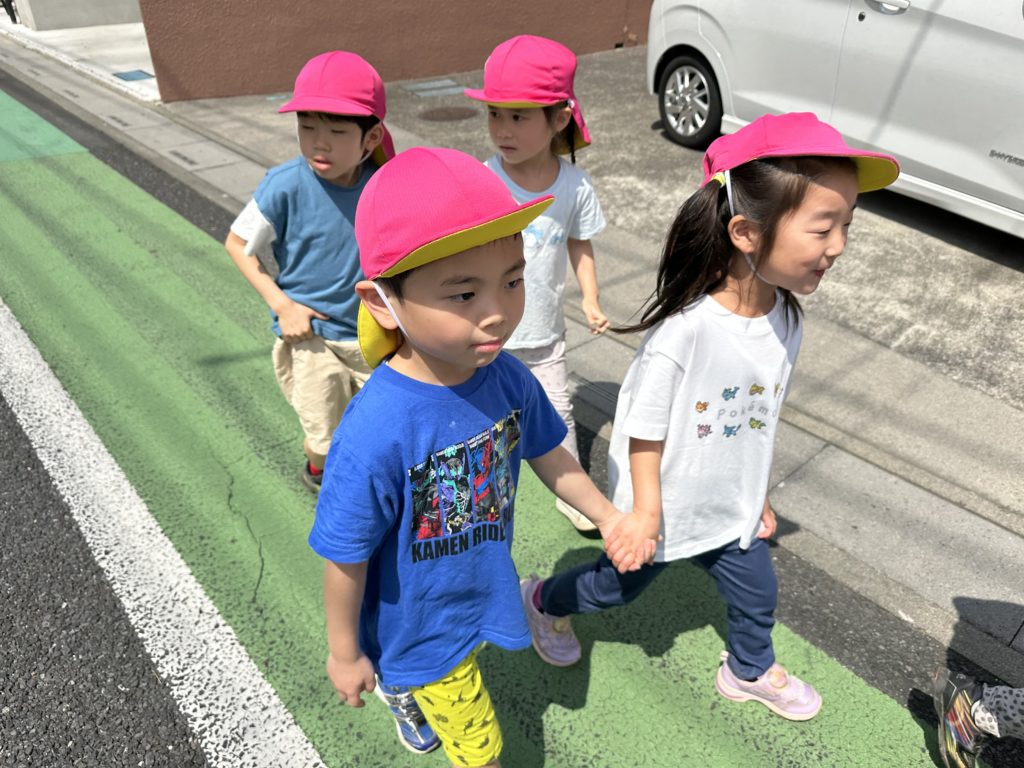「自動販売機があるね!」「あっちに行くと私のお家があるよ!」とお散歩の道を楽しむくじら組でした✨