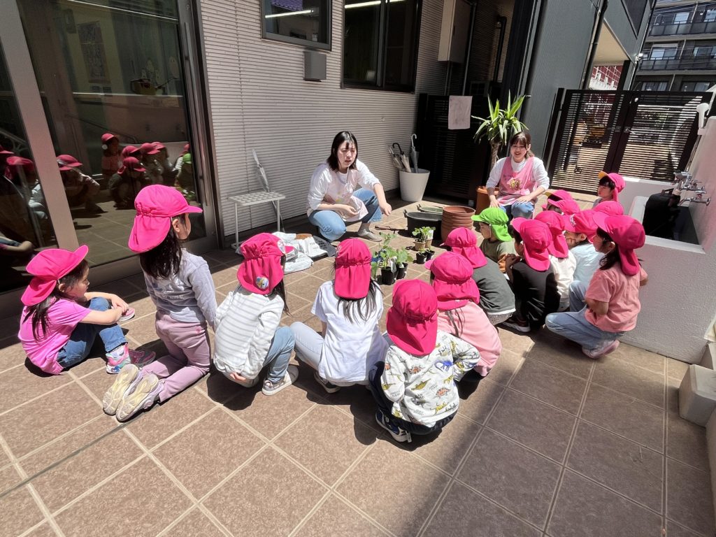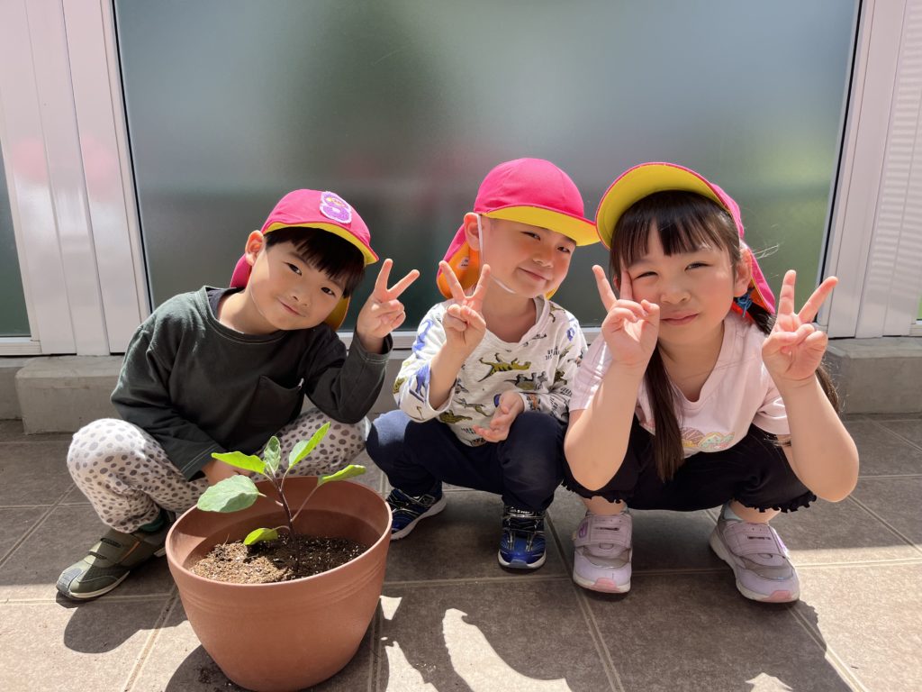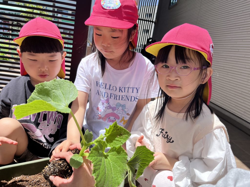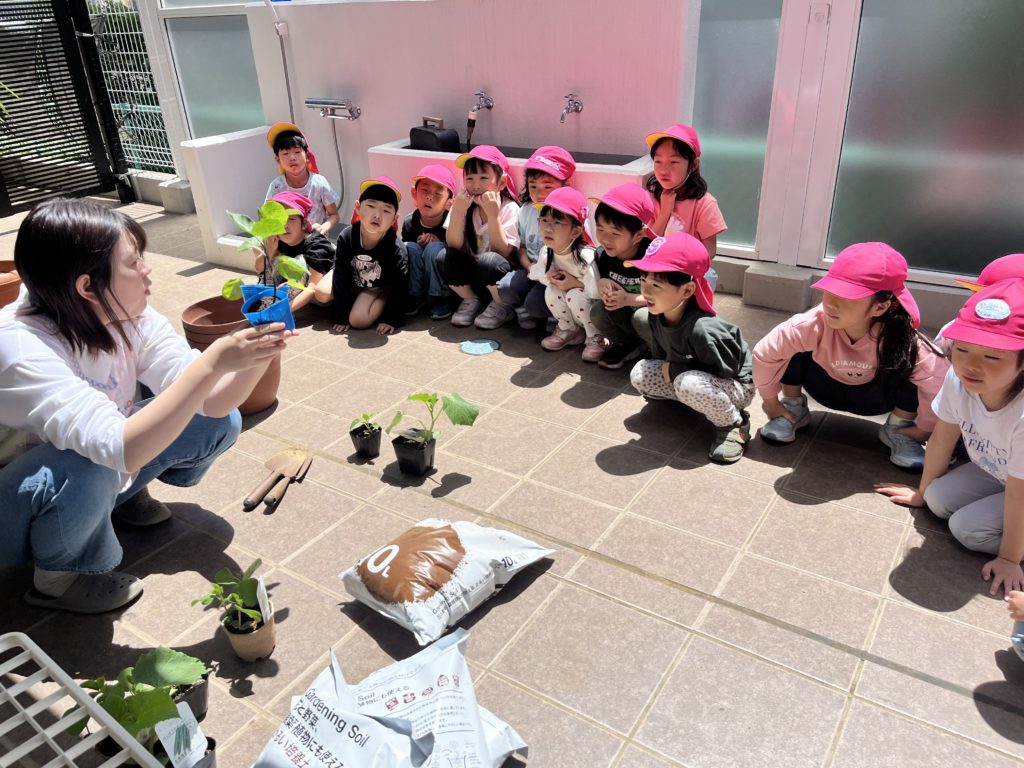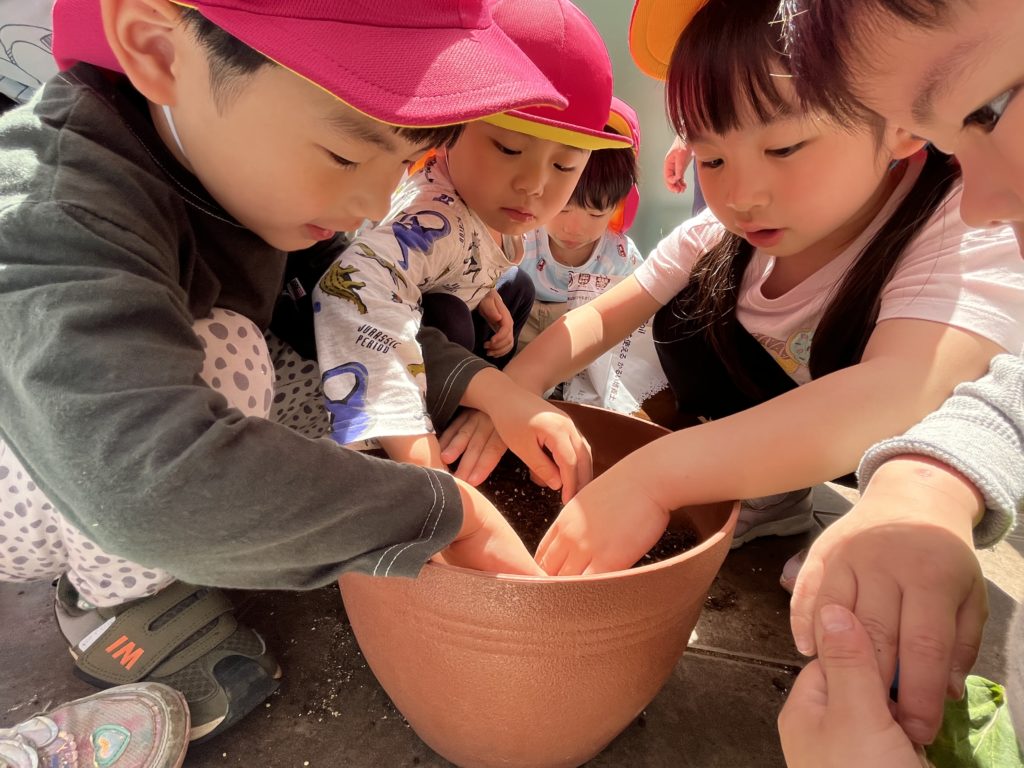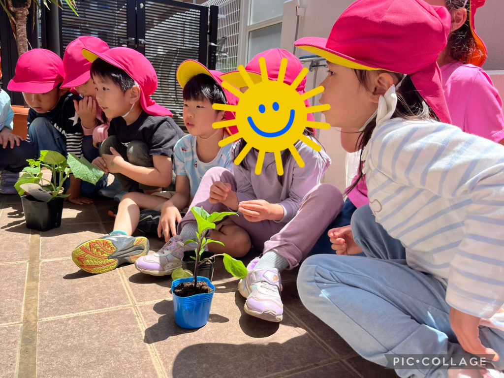 あやね先生の話を聞いて、各グループ毎に野菜の苗を植えました🌱
