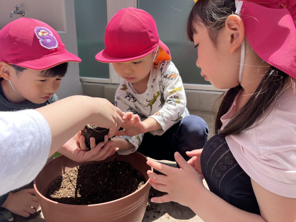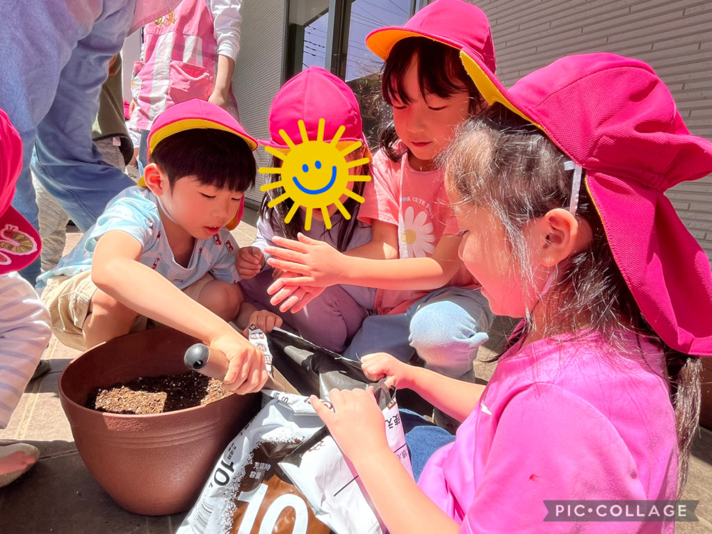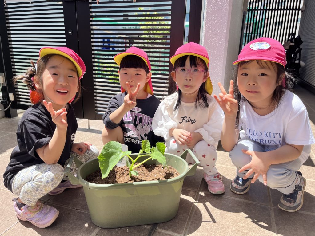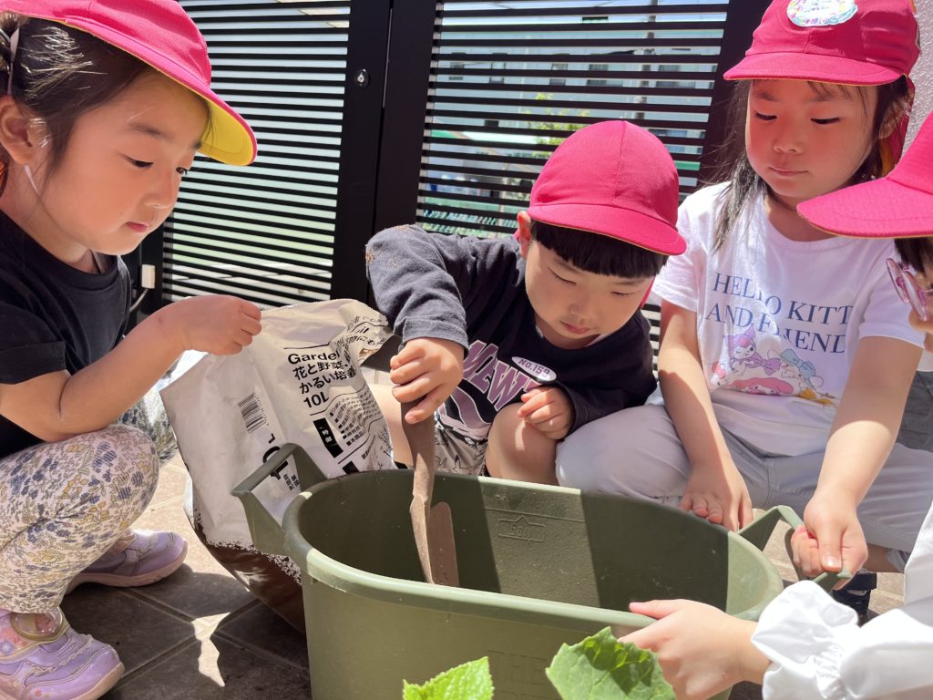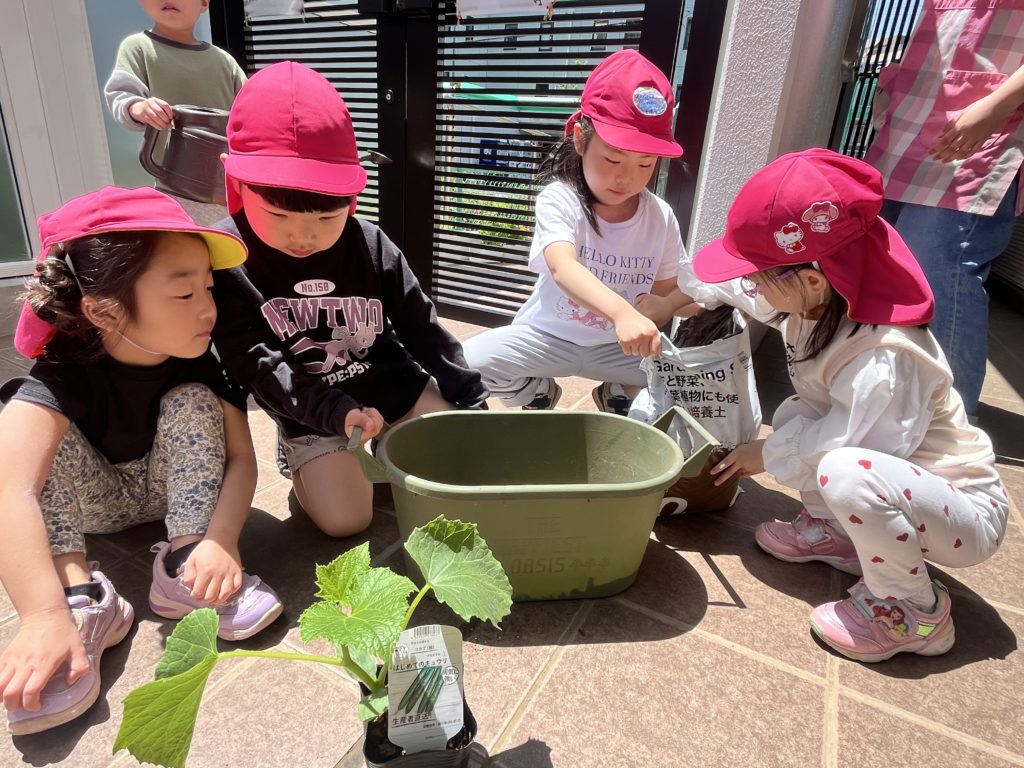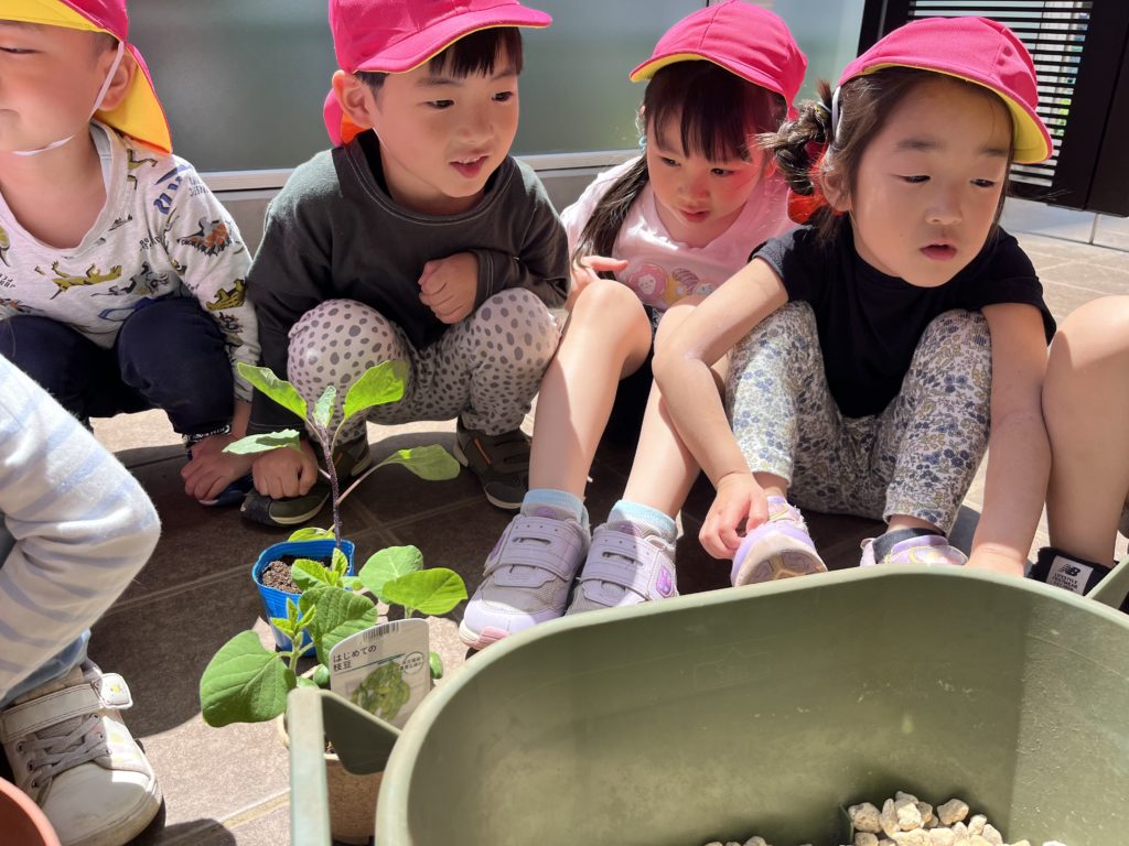 あやね先生の話を聞いて、各グループ毎に野菜の苗を植えました🌱