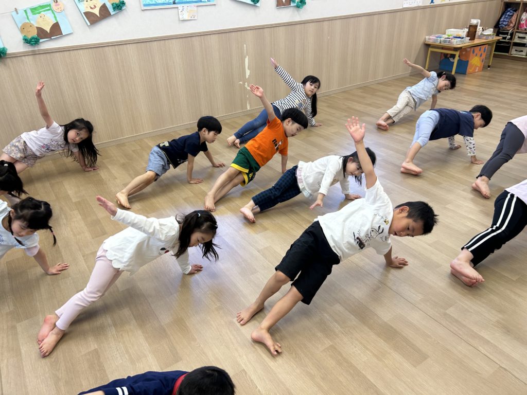 「今日の正課体育は何をするんだろうね?!」「くじらになったからかっこいいことかな😁」とドキドキが止まらないくじら組さん💓