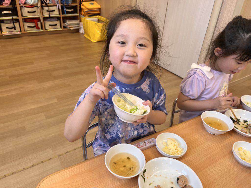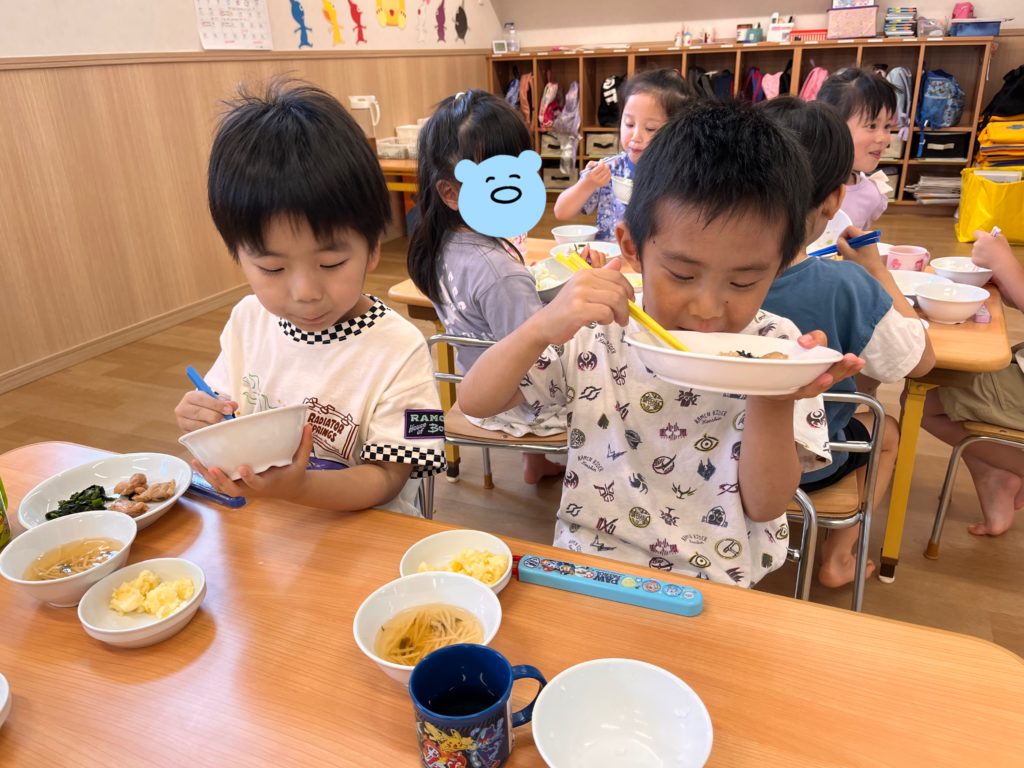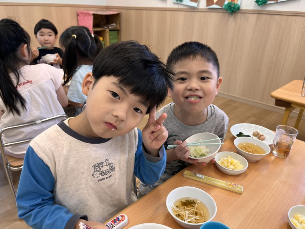 沢山身体を動かした後のお給食はいつもより美味しいです😋