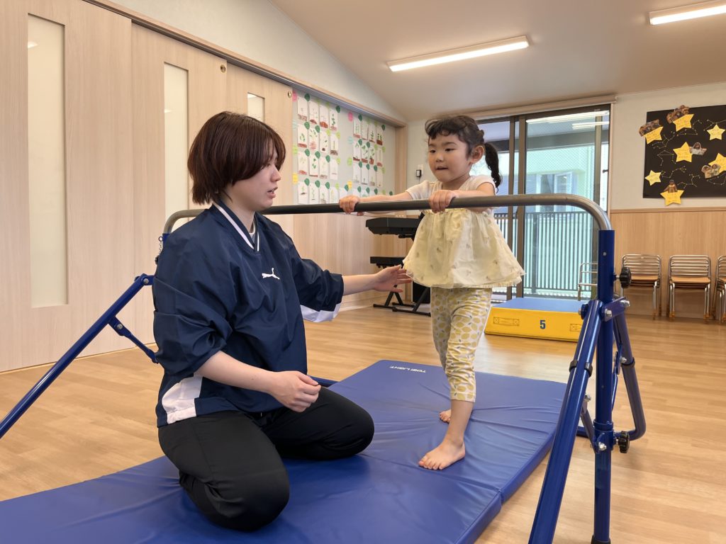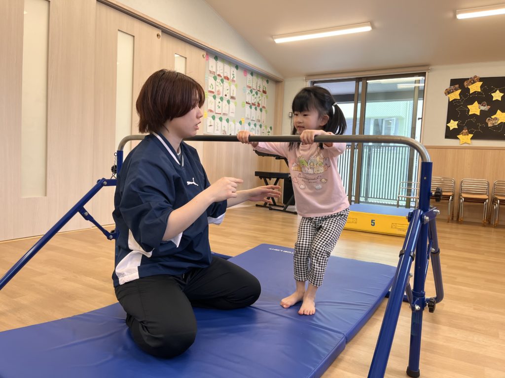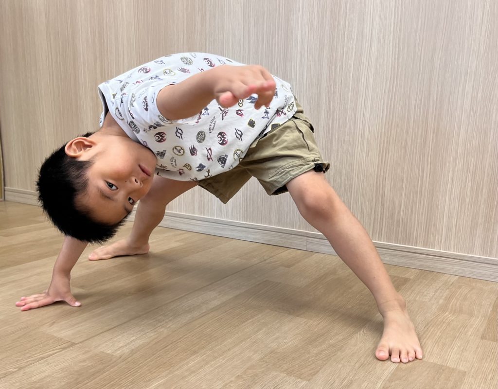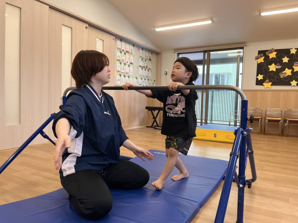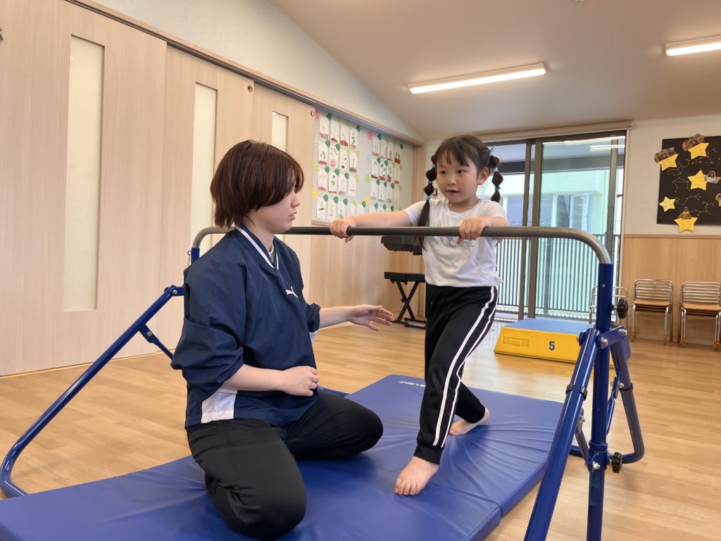 逆立ちは壁を使いながら、先生の補助付きで行っています!