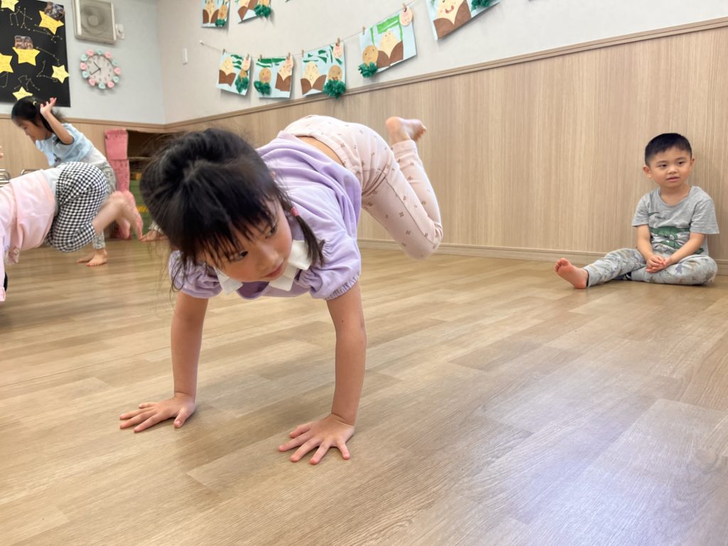 くじら組は、逆立ちと逆上がりを練習しました!!