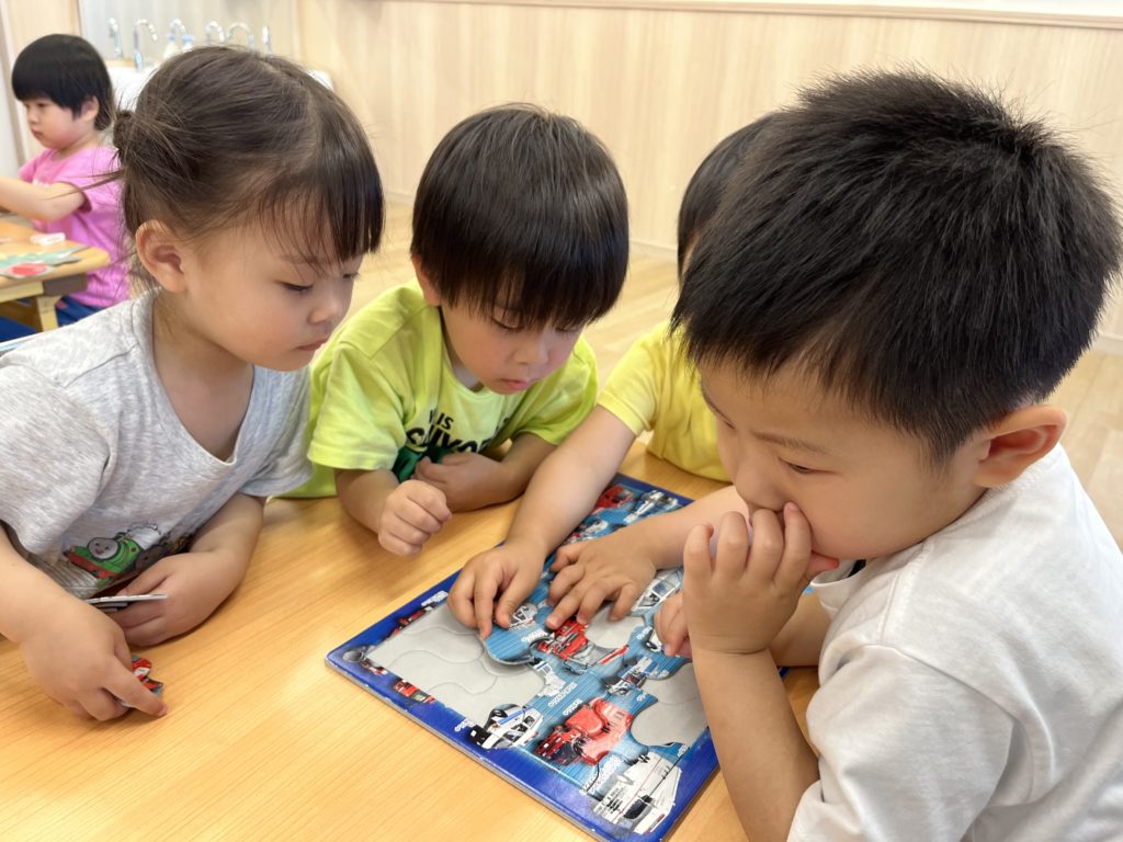 正課体育の後は、パズルと洗濯バサミ遊びを楽しみました😊