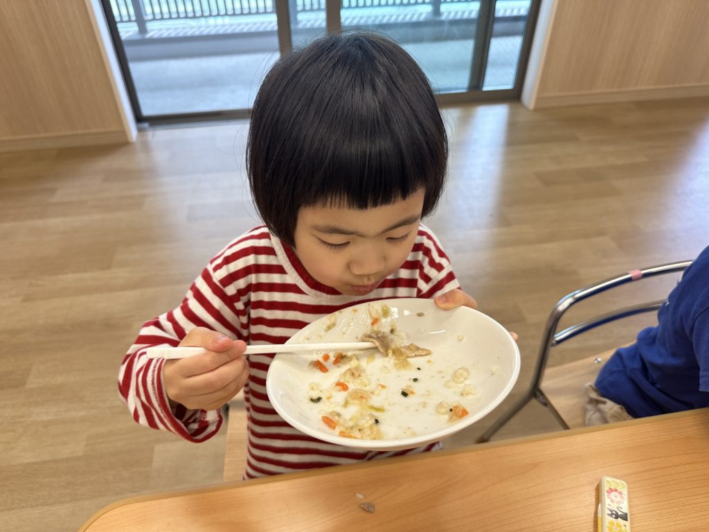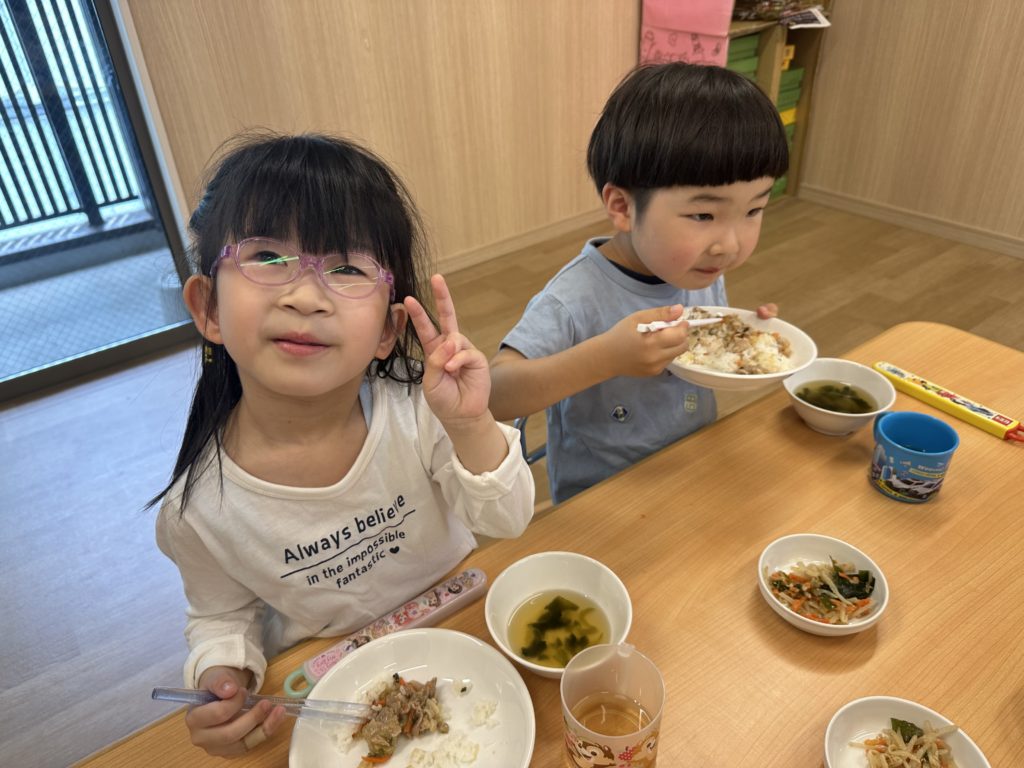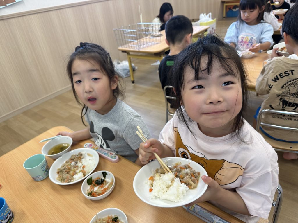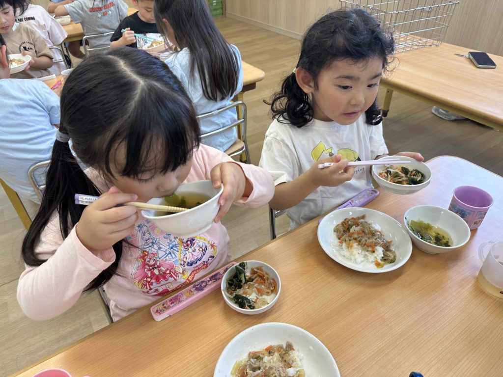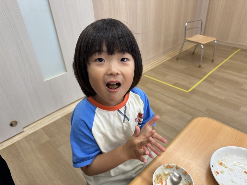沢山外で遊んだいるか組、くじら組は「お腹すいたー!」と給食を楽しみにしていました😆