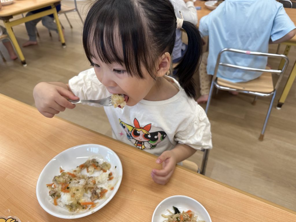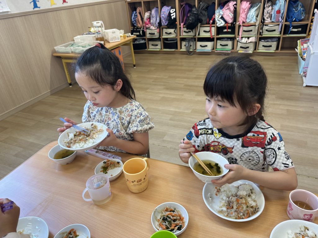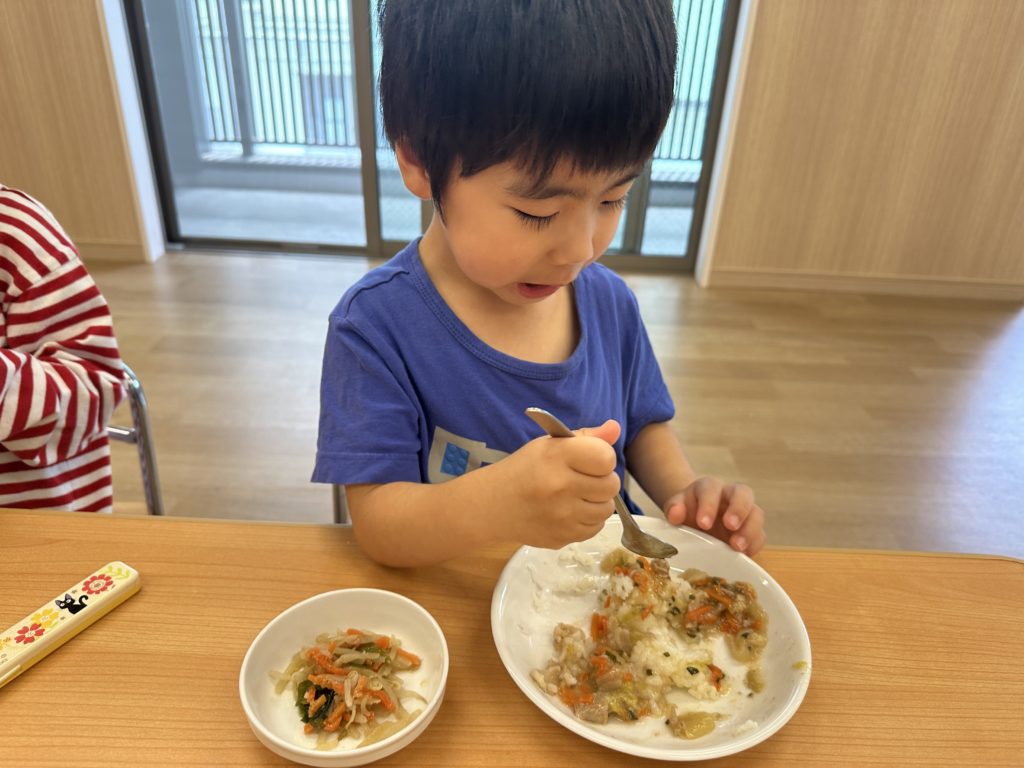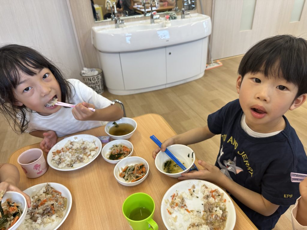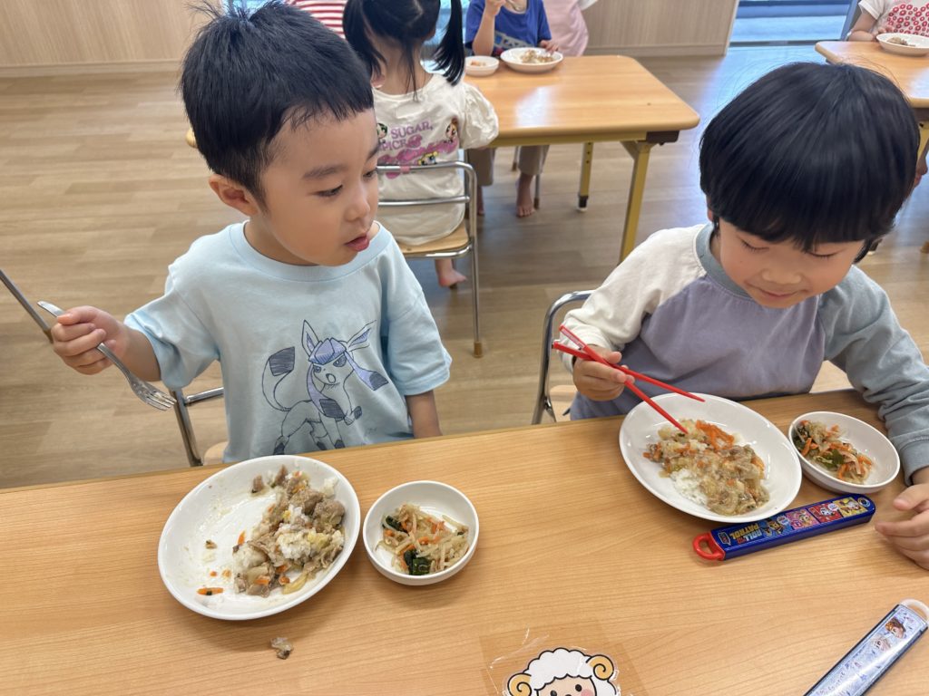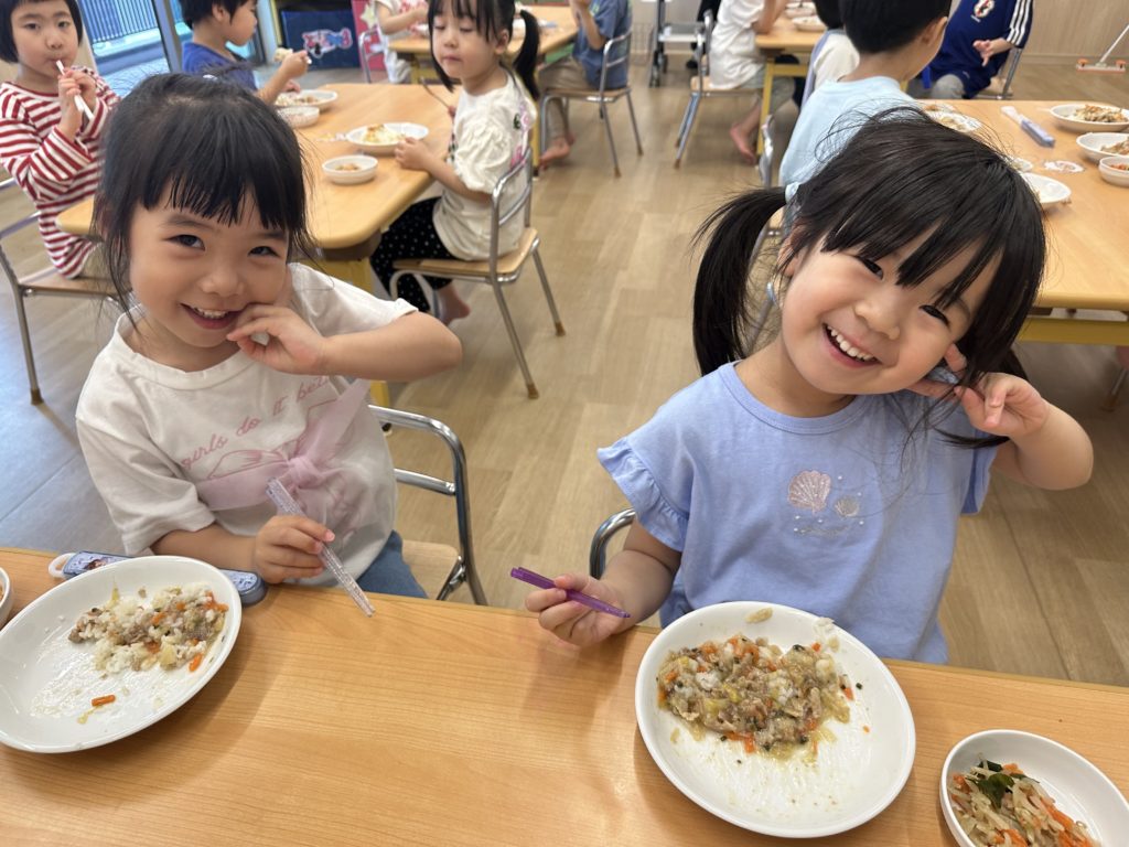 沢山外で遊んだいるか組、くじら組は「お腹すいたー!」と給食を楽しみにしていました😆