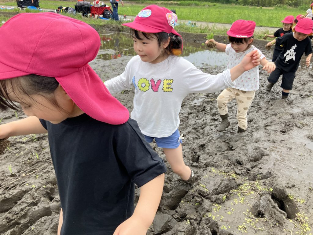 田んぼの前に着くと「うわー!泥がすごい!」「早く入ってみたいな」ととても喜んでいました!