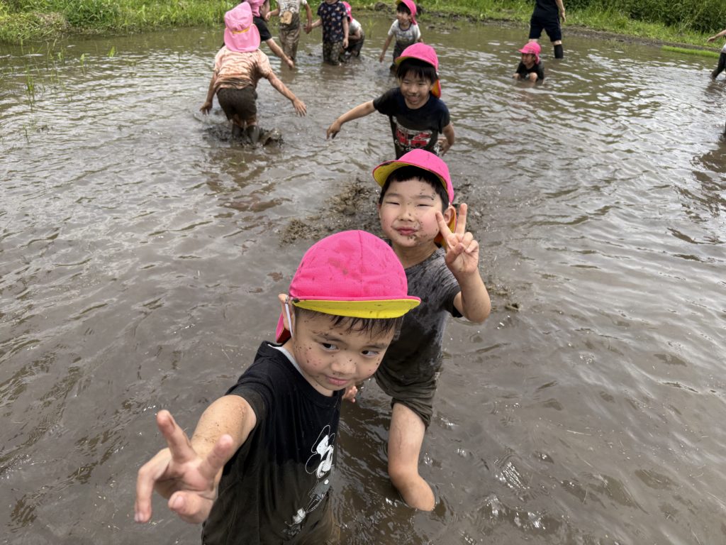田植えが終わった後は泥遊び💪🏻
