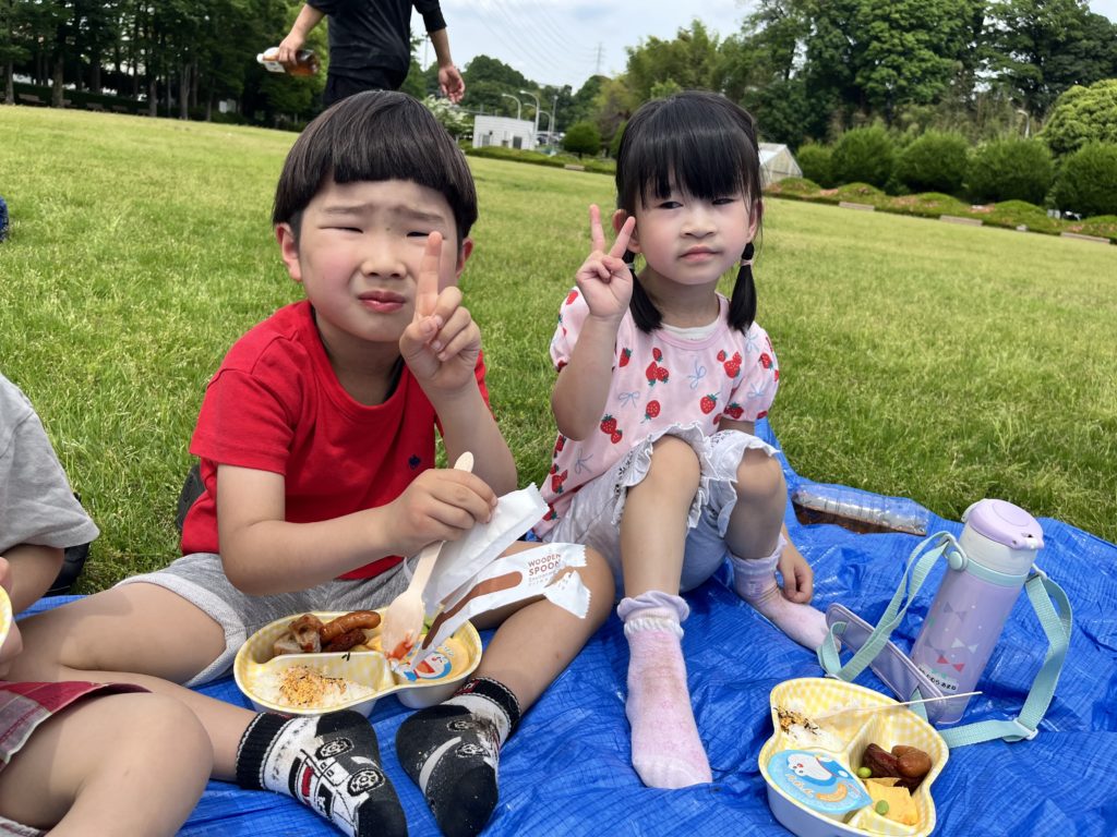 田植えが終わった後はみんなが楽しみにしていたドラえもん弁当の時間🩵