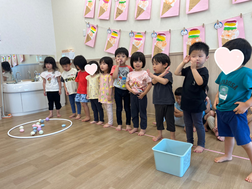 今日のかもめ組は、2チームに分かれて的当てゲームをしました!