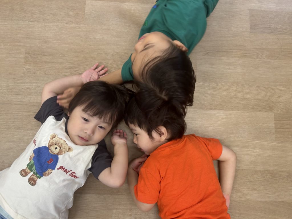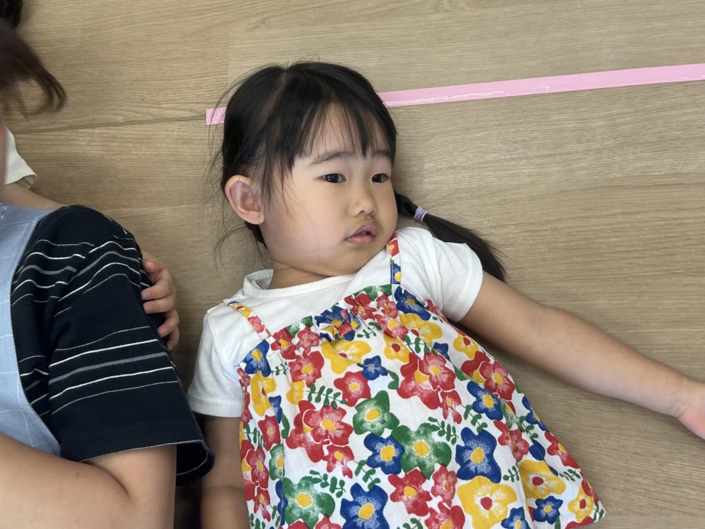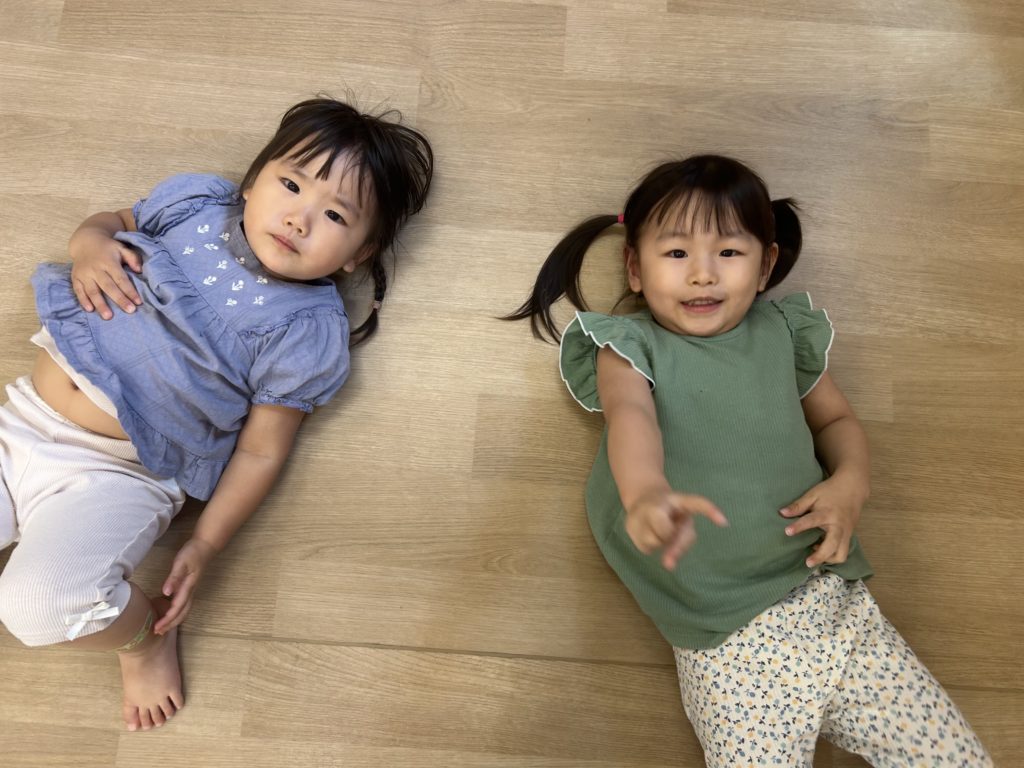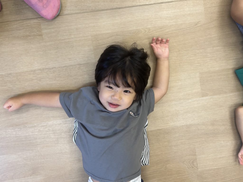 先生たちが「おへそみーつけた」と言うと「隠してるから見えないよー😁」とおへそを隠すのがとっても上手なあざらし組のみんなでした‼️ニコニコ笑顔で楽しんでいました🎶