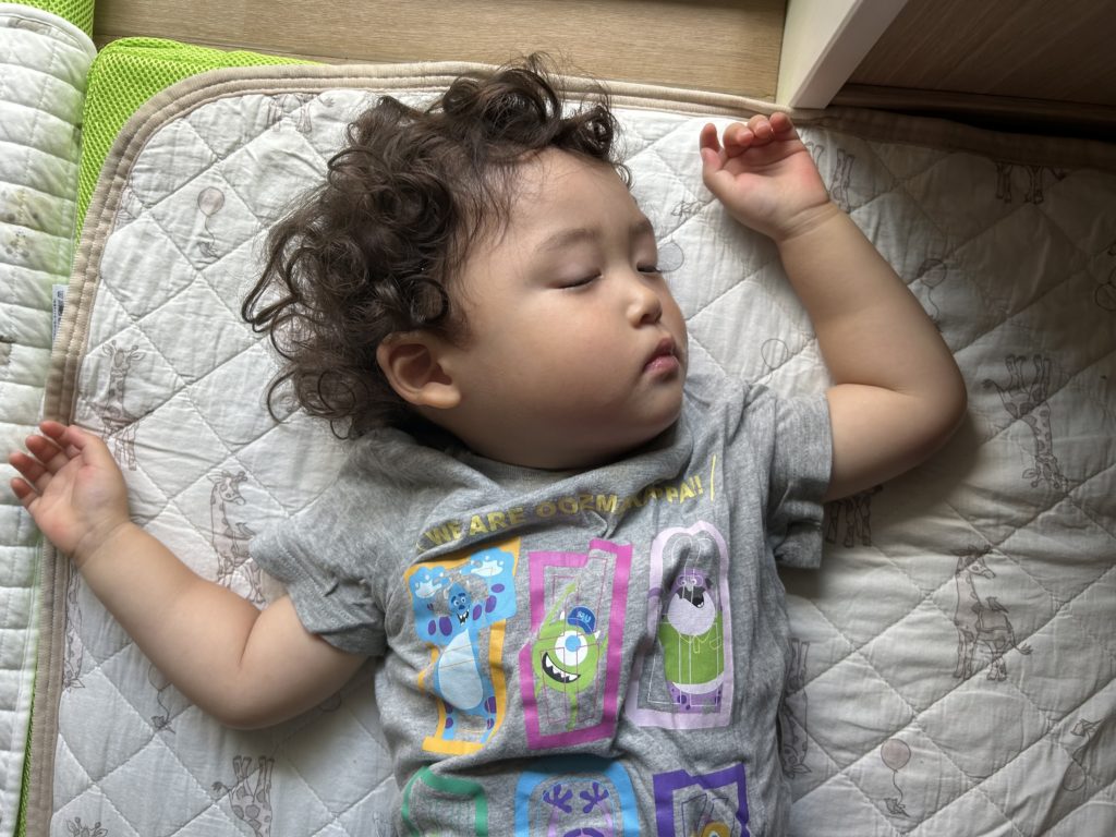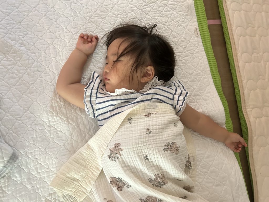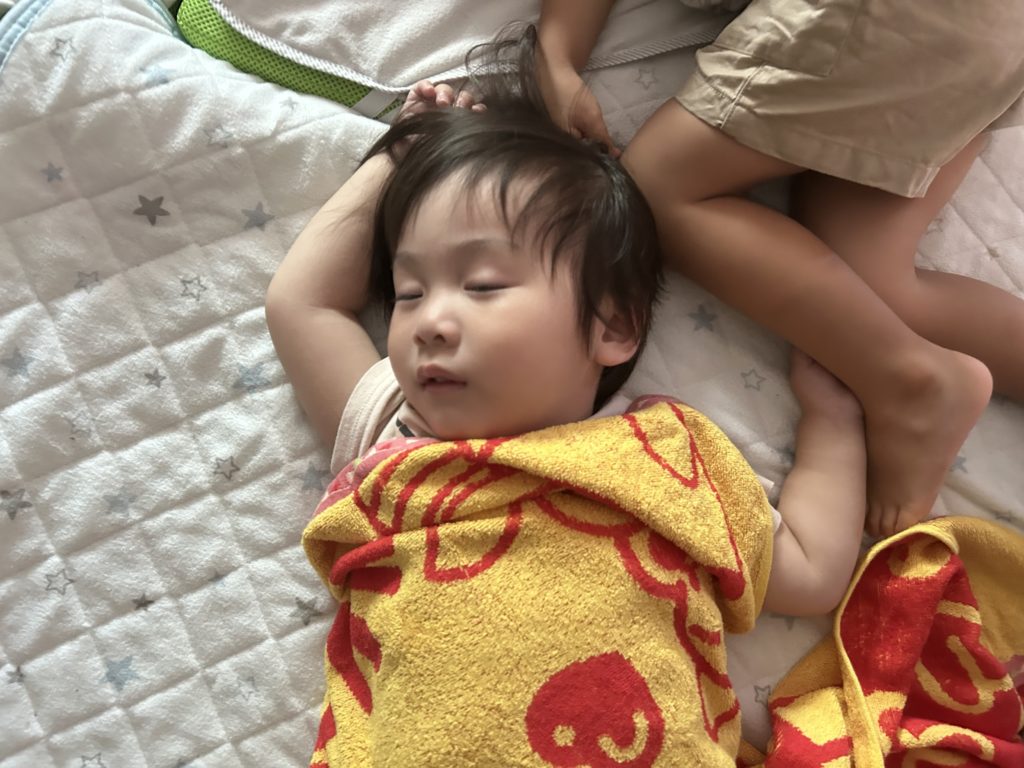 沢山遊んだ後は大好きなハンバーグを食べて、「今日のハンバーグ美味しかったね💗」とぐっすりお昼寝していました💤