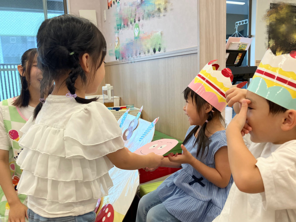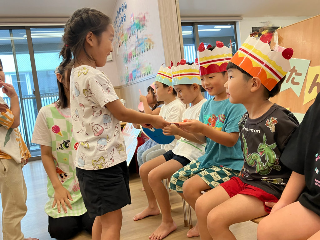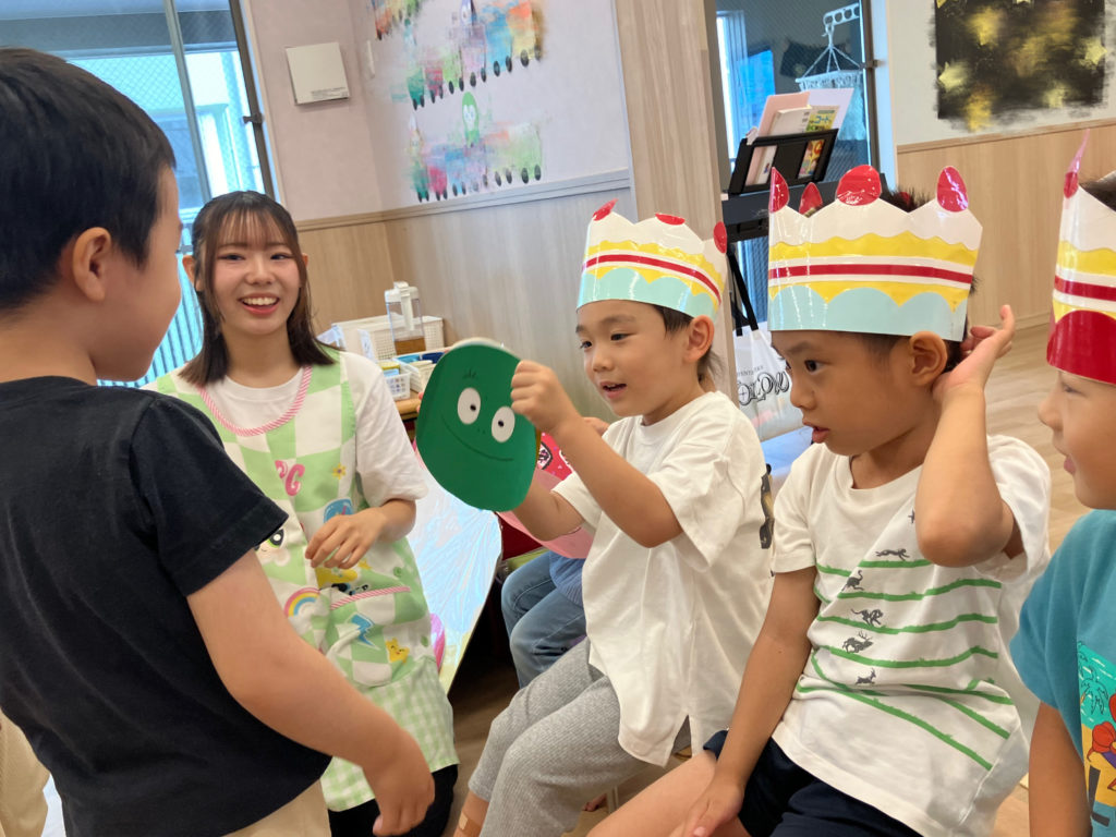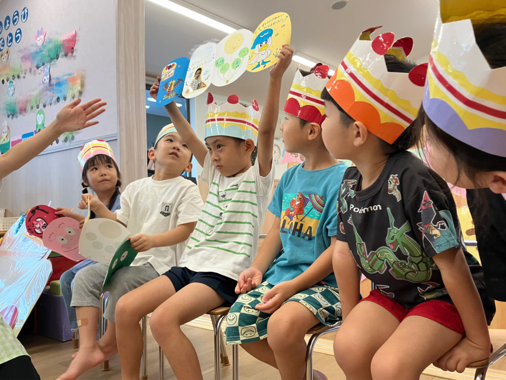 屋台の具材からみんなで何のお店か考えて「かき氷」🍧「チョコバナナ」「焼きそば」と元気いっぱい参加していました✌🏻✨