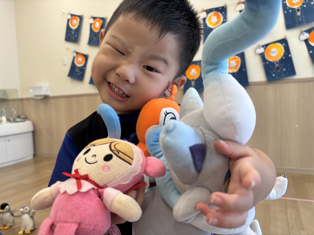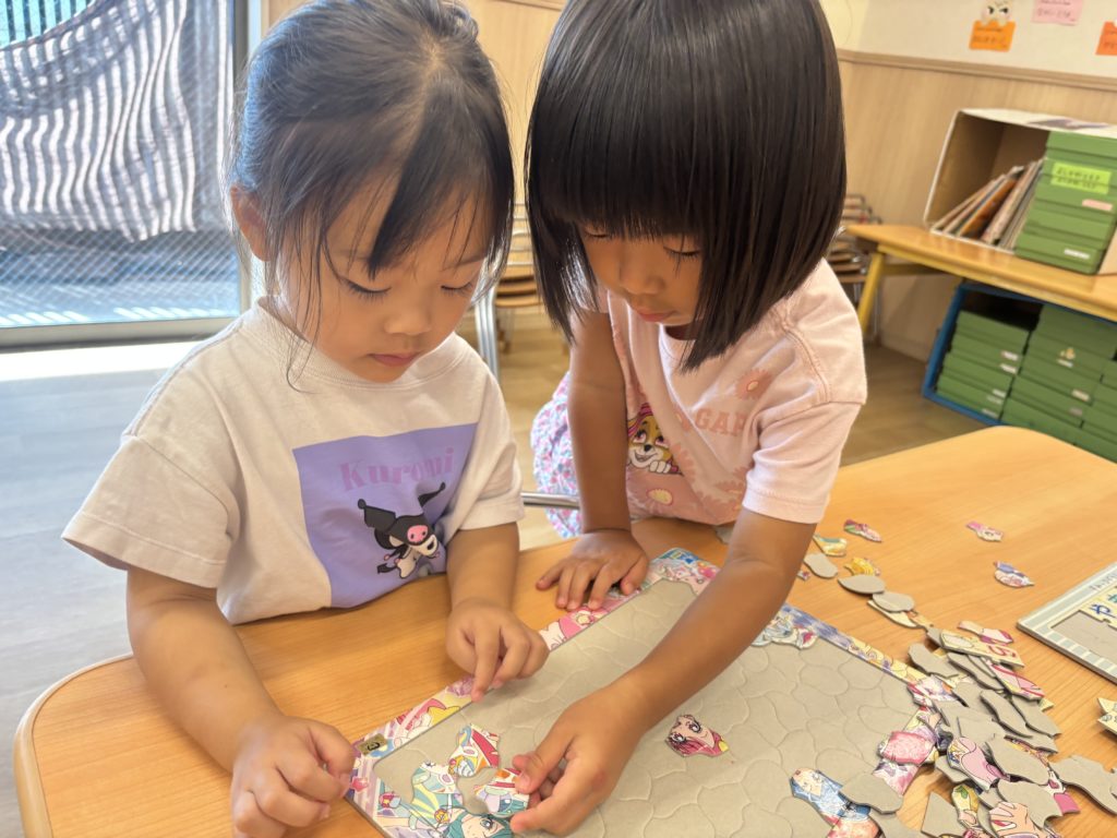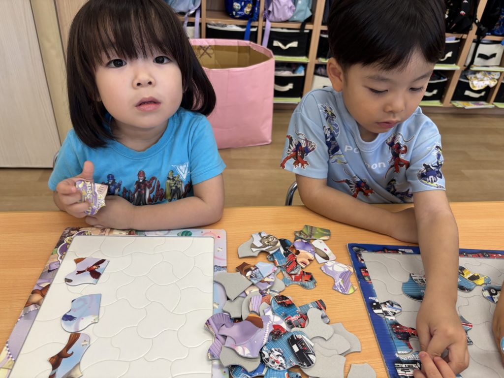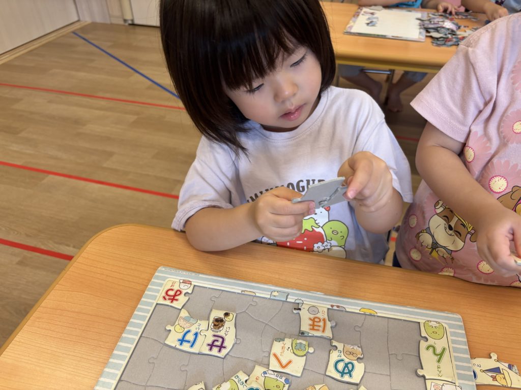 朝の時間は、パズルとぬいぐるみ遊び🧸