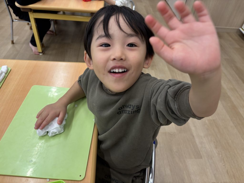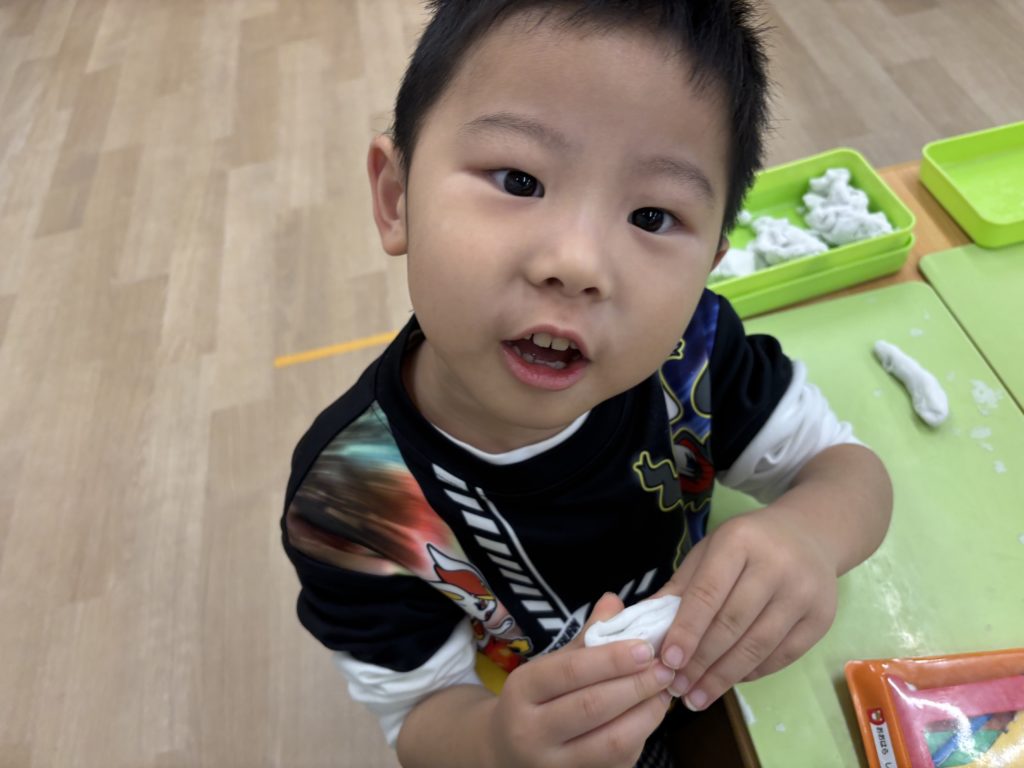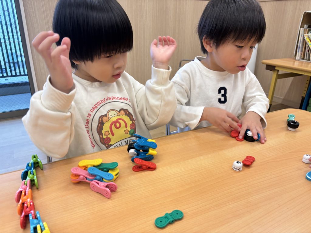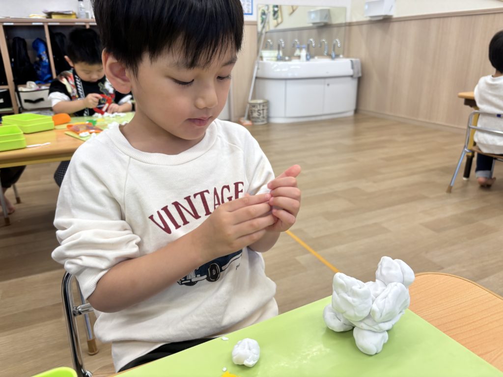 今日のかもめ組は、粘土遊び・クリップ遊び・ブロック遊びを楽しみました😊