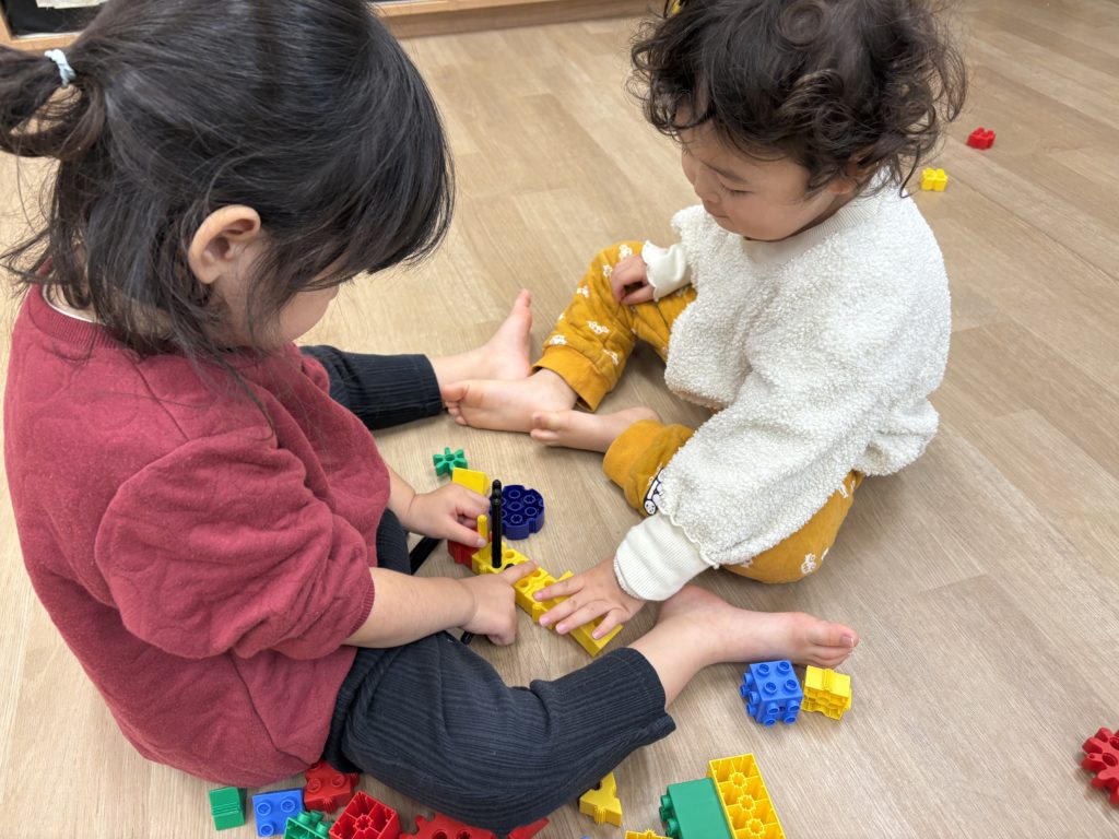 頑張って製作をした後は、お兄さんお姉さんから借りたおもちゃでたくさん遊びました🎶