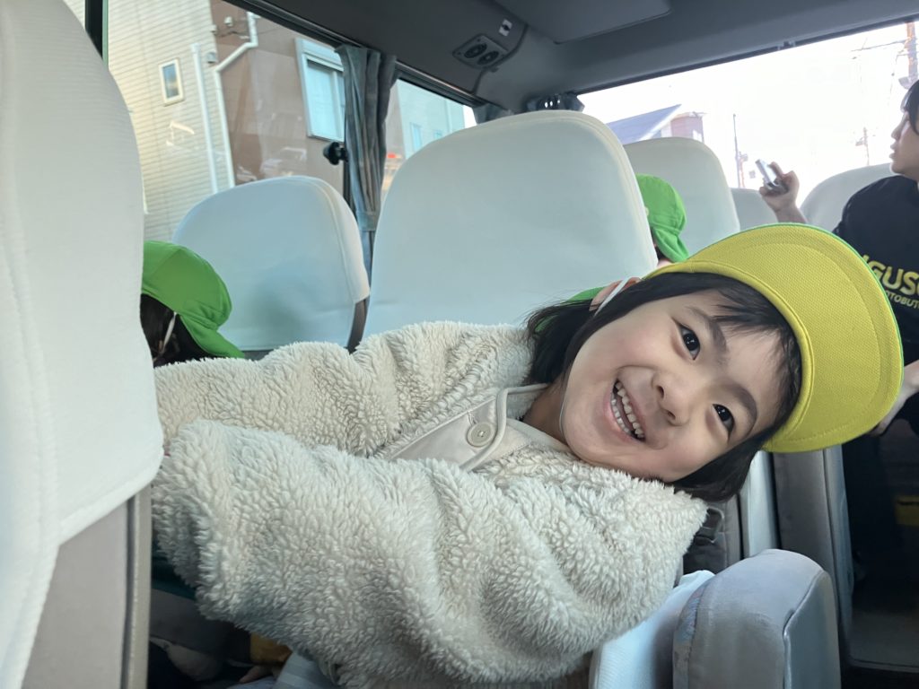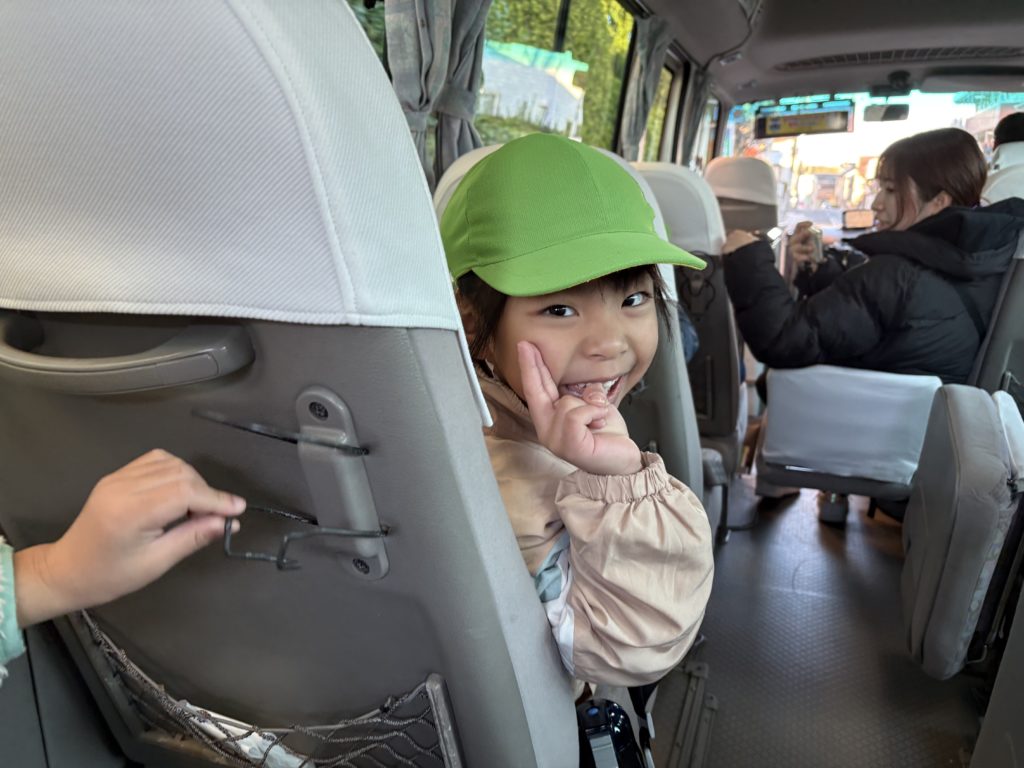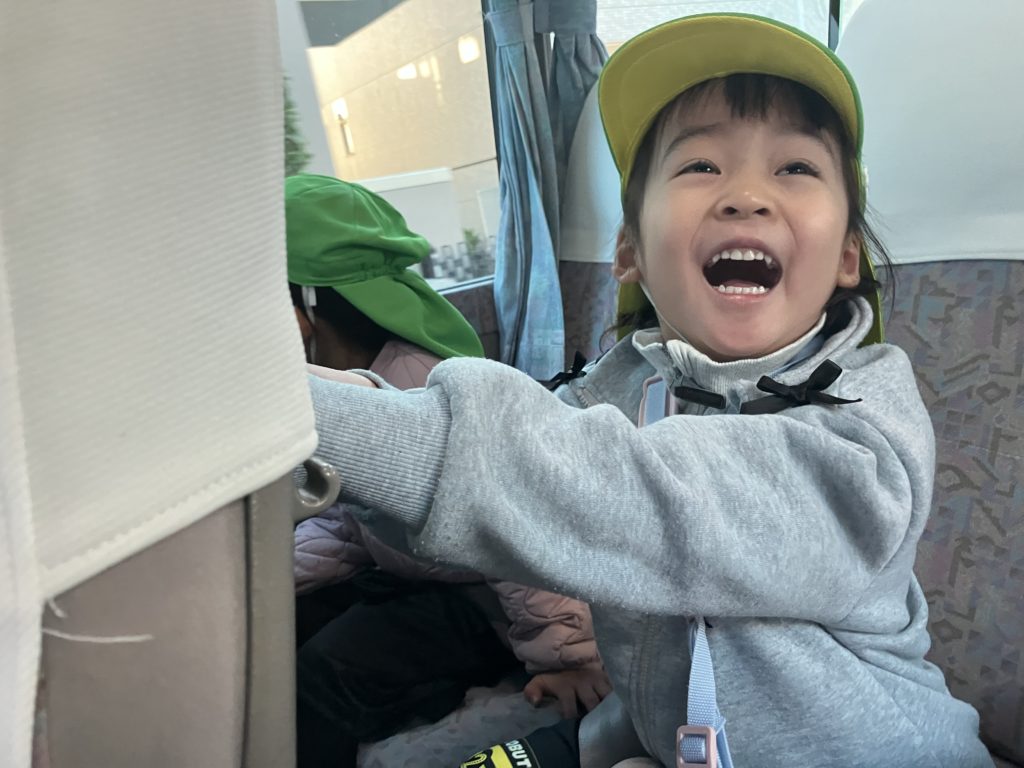 最後はドラえもんお弁当を食べて大満足のいるか組!たくさん体を動かしたのでバスでは疲れてぐっすりでした!