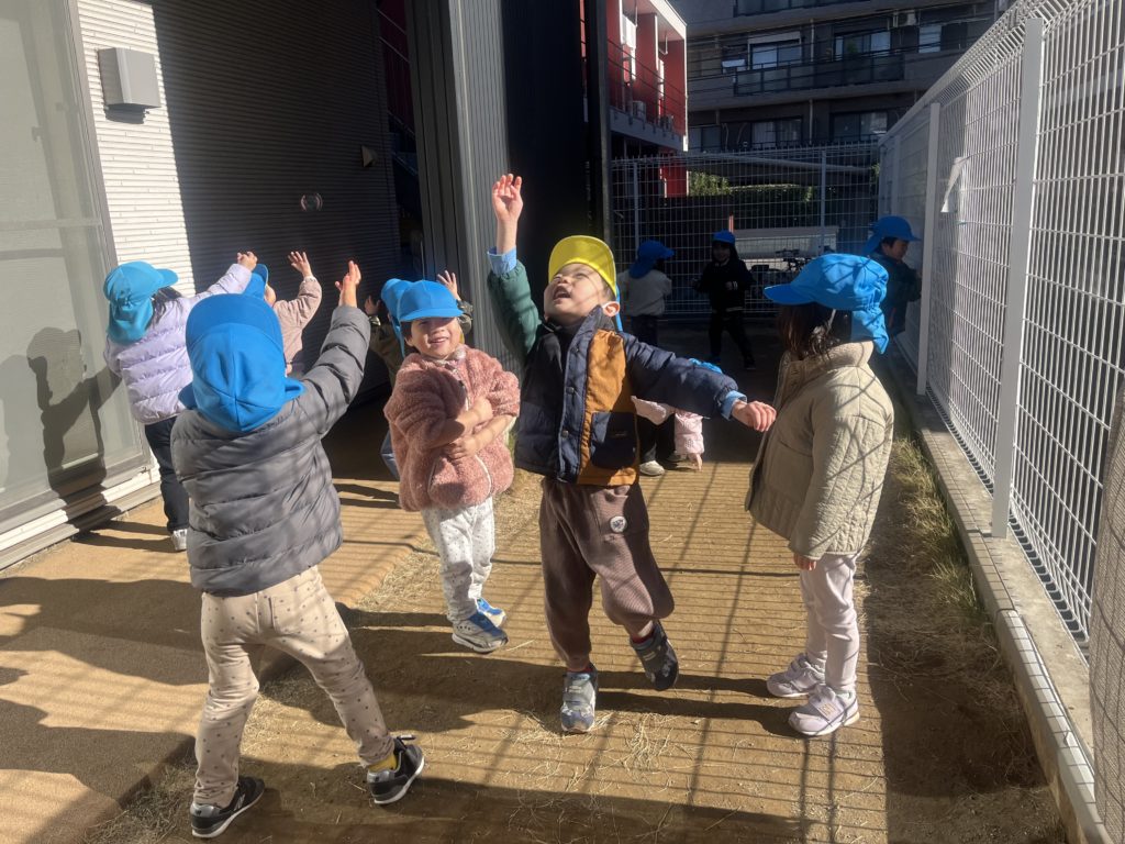 風が冷たくて「寒いねー🥶」と言うと「ぜーんぜん!寒くてもへっちゃらだよー!!」と寒さにも負けずに元気なかもめ組のみんな🎶