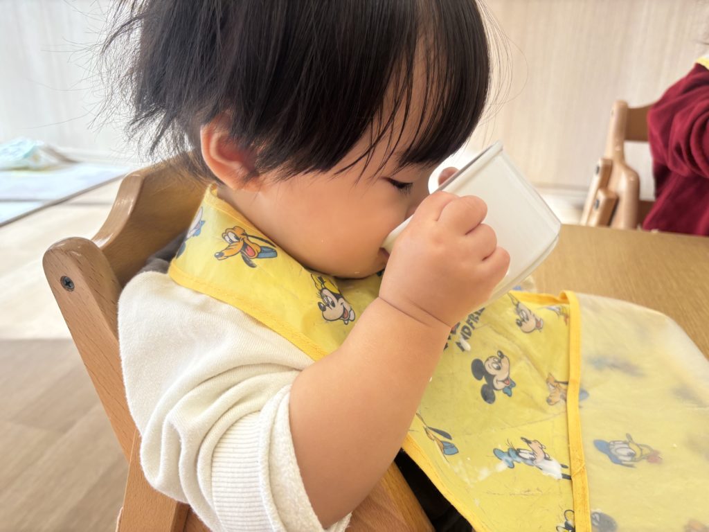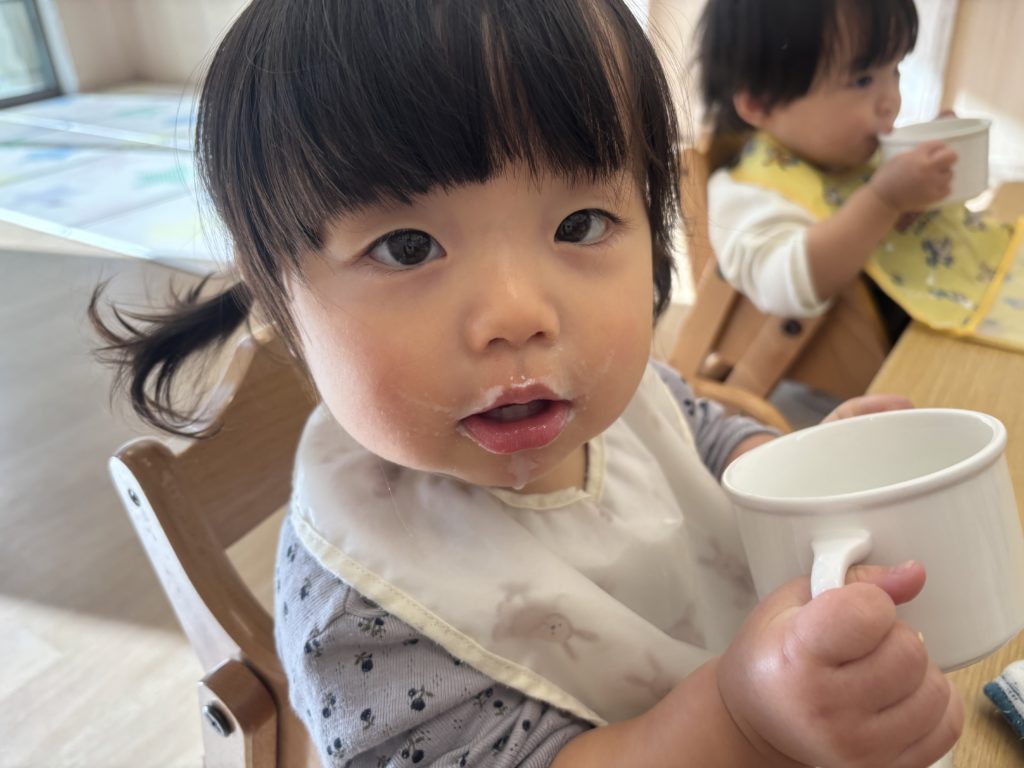 らっこ組のお友だち。コップで牛乳も上手に飲めるようになりました✨