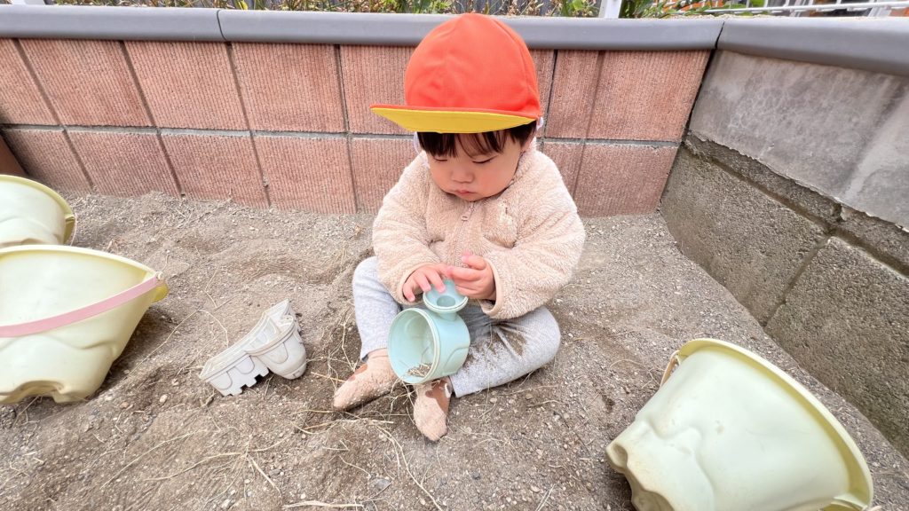 お砂場に着くと、スコップを使ってバケツに砂を入れたり、手で触って砂の感触を楽しんでいました☺️