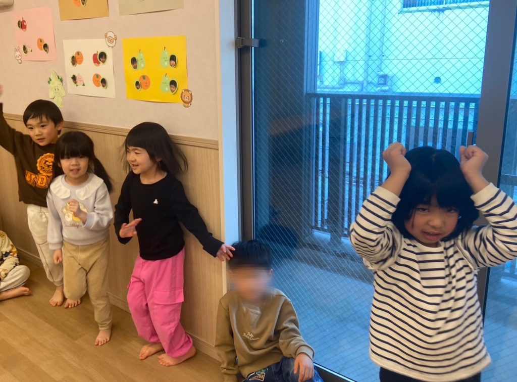 今日は1月のお誕生会がありました。待っている子は元気いっぱいの声でお友達をお祝いしてくれていました^_^