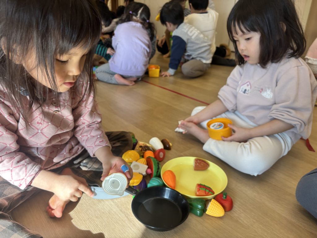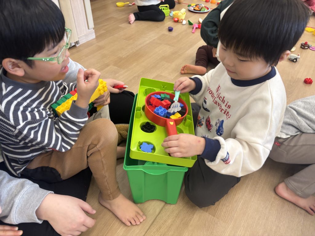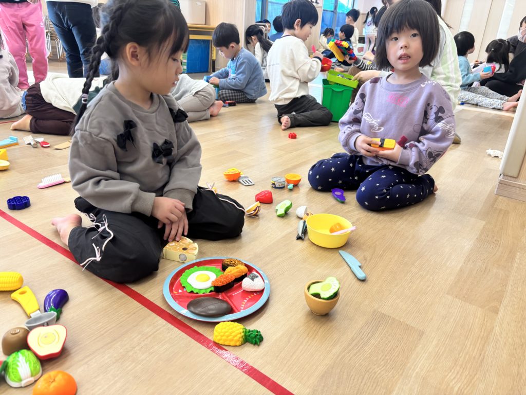 ブロック、おままごとも他のクラスのお友だちと遊ぶとまた違った楽しさがあります😁