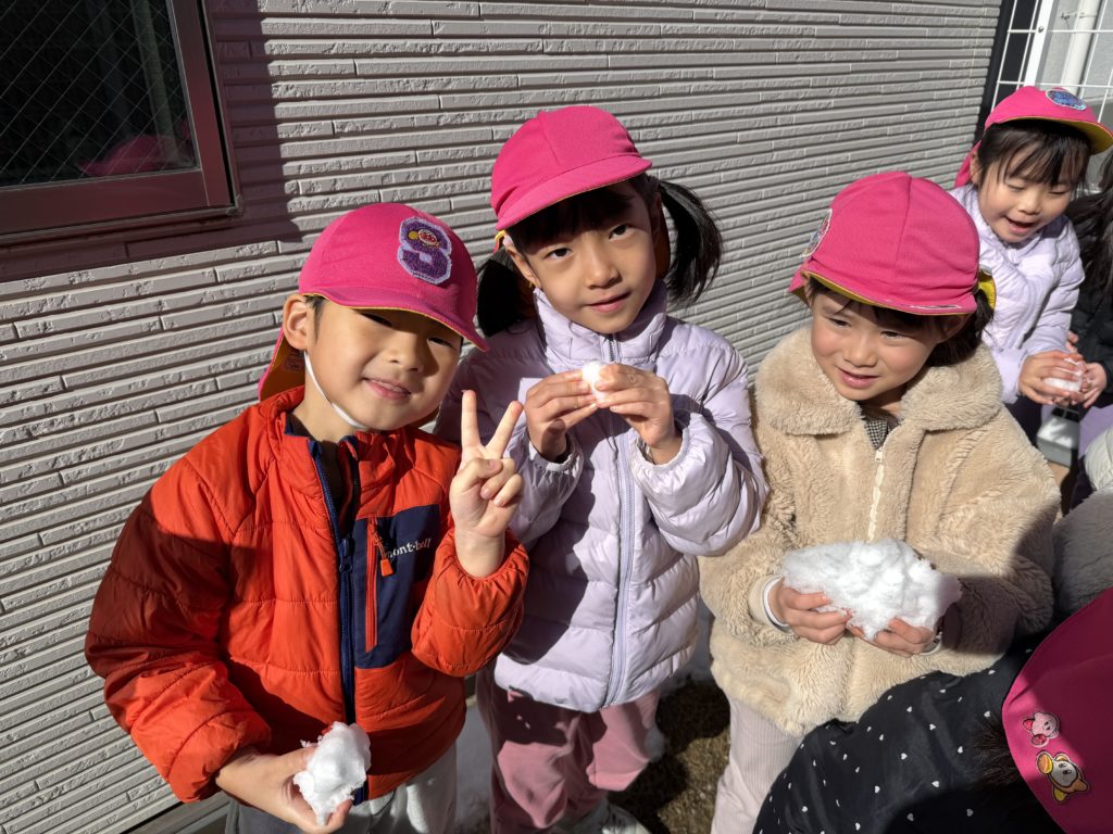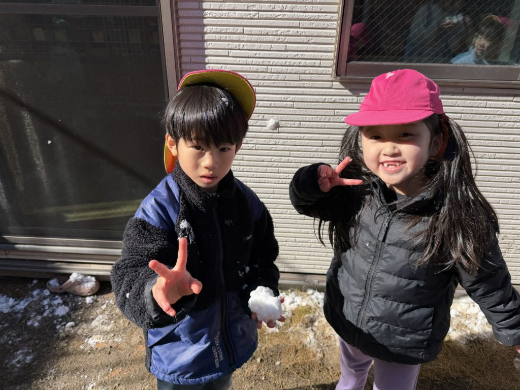 手が冷たい‼️と言いながらも、雪だるまや雪のお団子などいっぱい作って遊んでいました☃️