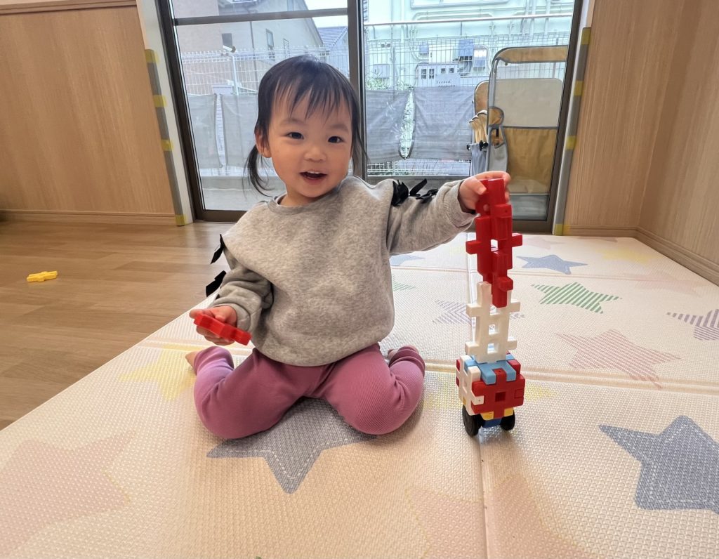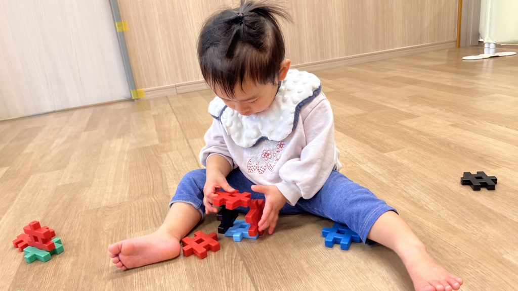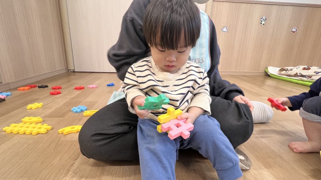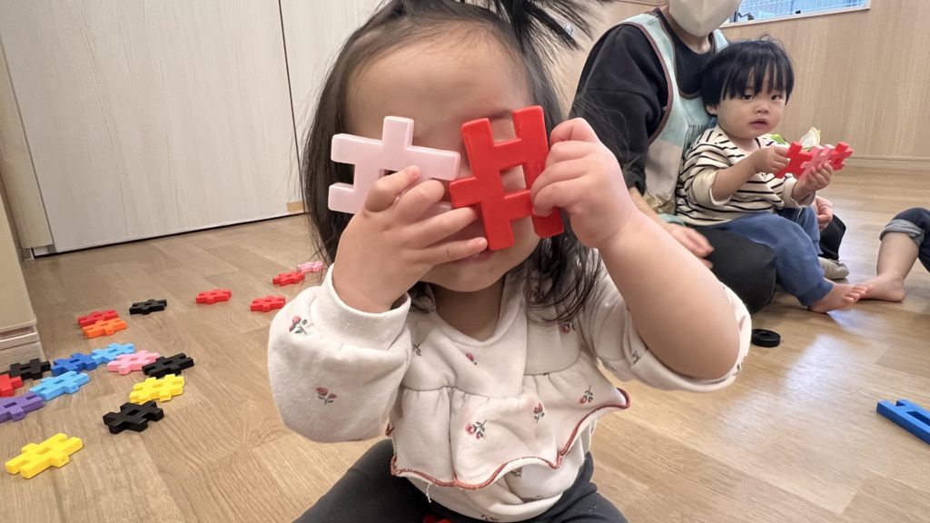 ブロックを繋げたり穴から覗いたりしながら楽しんでいました😆