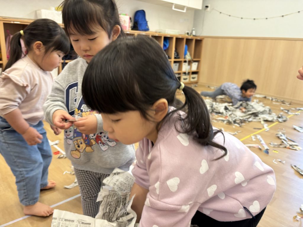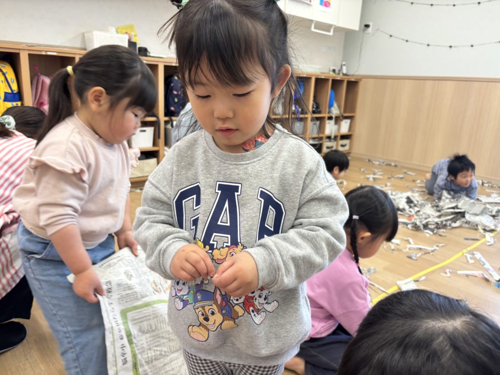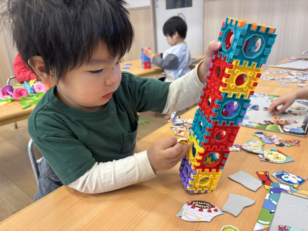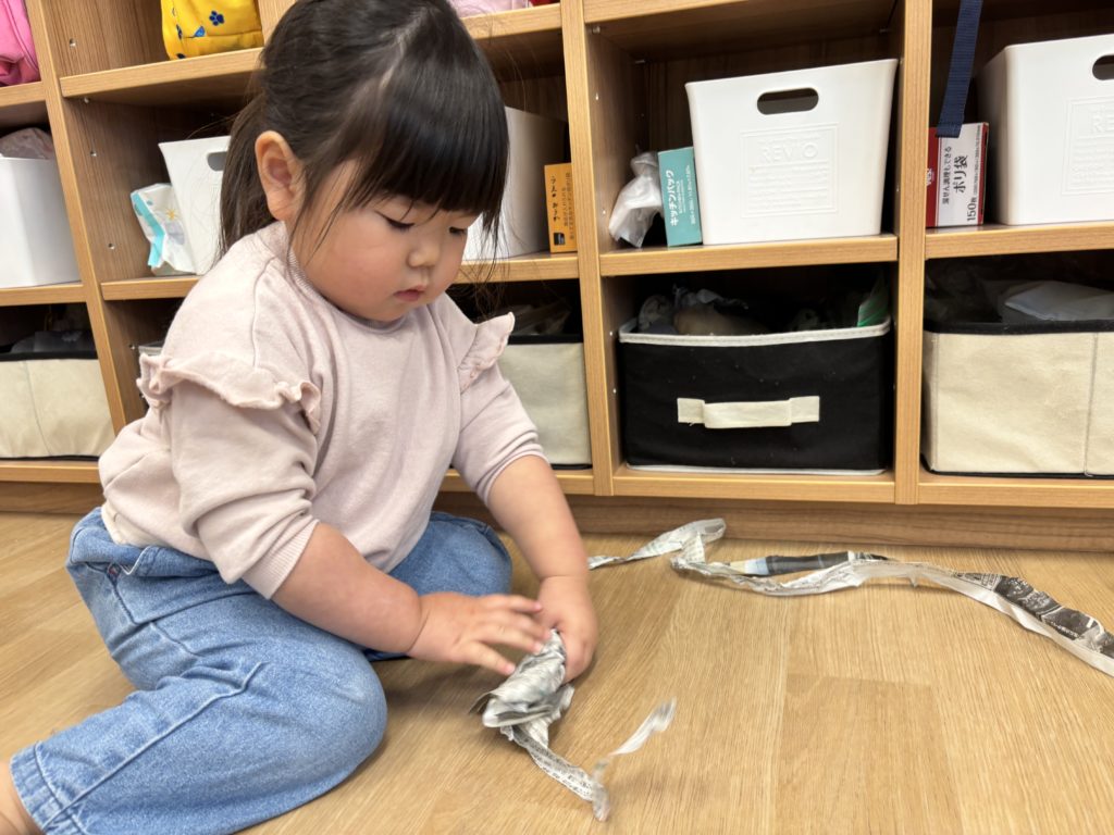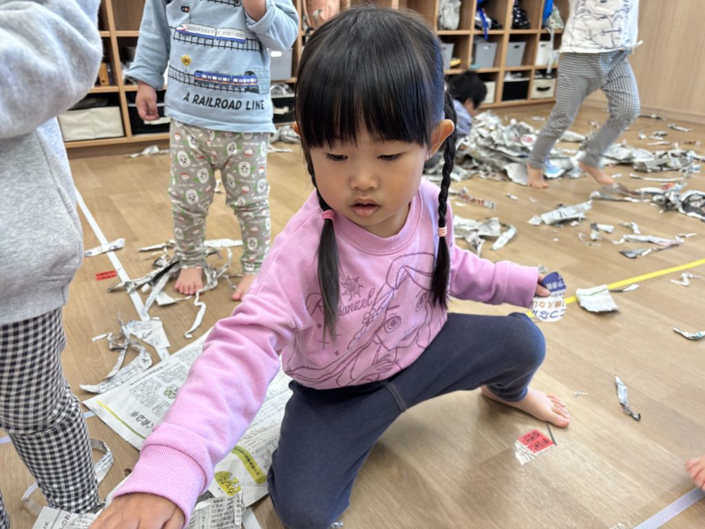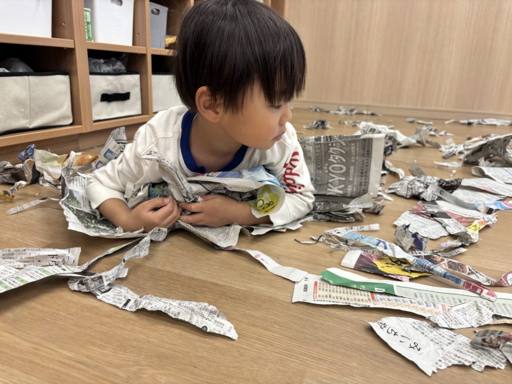 お部屋で新聞紙遊びや、ブロック、パズルを楽しみました😊