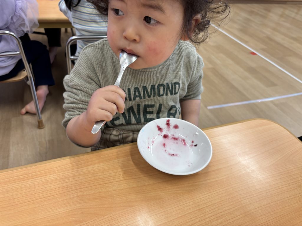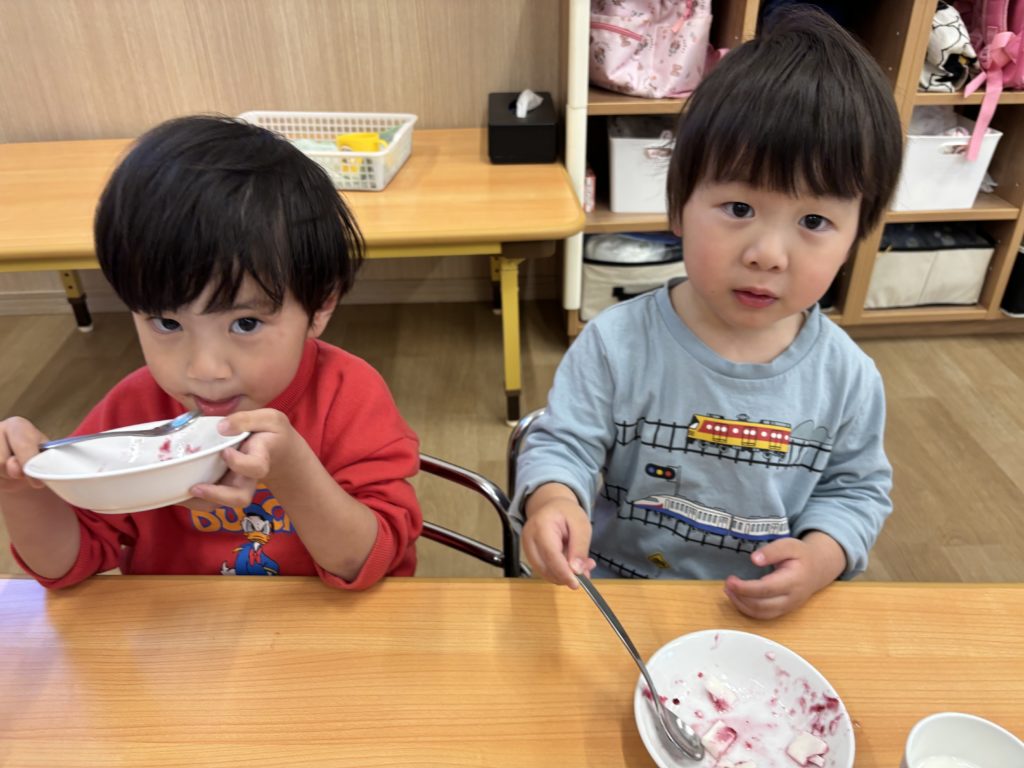 「おいしいよー!!みててね!」とおやつも賑やかなあざらし組でした😁