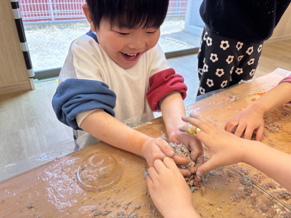 今日はいるか組とくじら組で感触遊びをしました✨