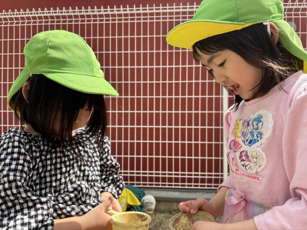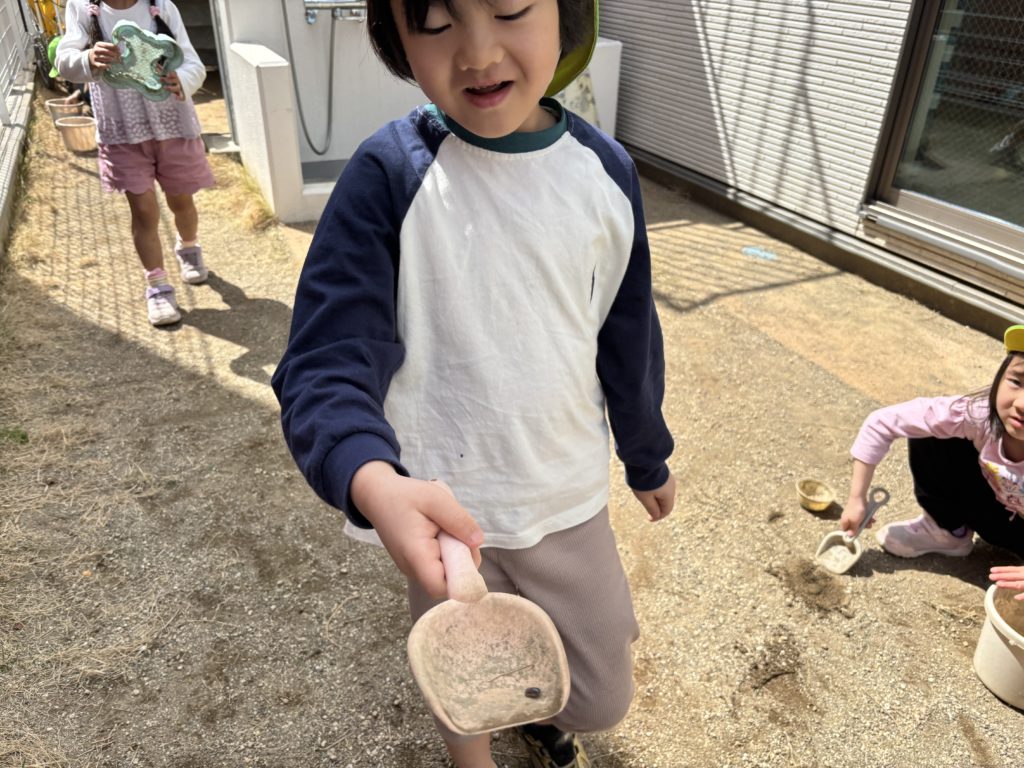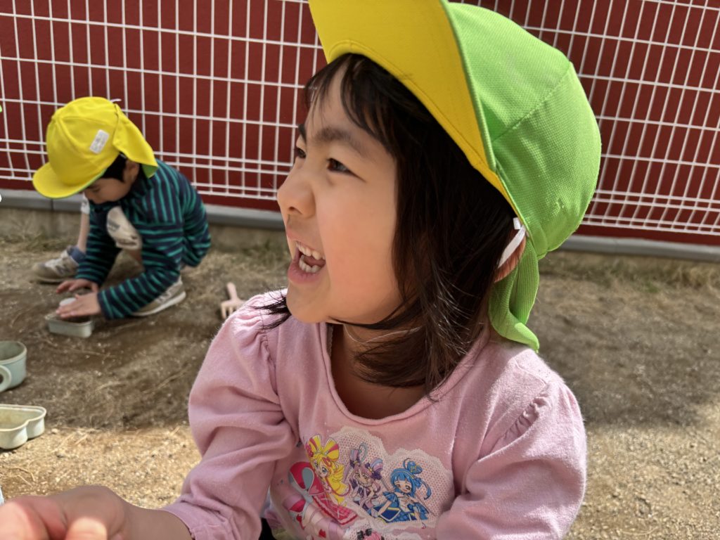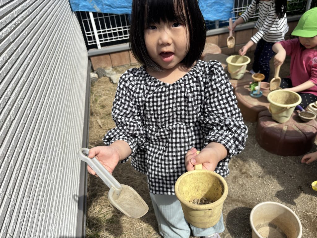 かもめ組は園庭遊びが大好き😊 朝の会が終わると、「おそといくー??」とみんなが聞いてくれます😊 お天気も良く、すぐに園庭へ出発! 新しいお友だちいるよー!!わたしのあかちゃんいるよ