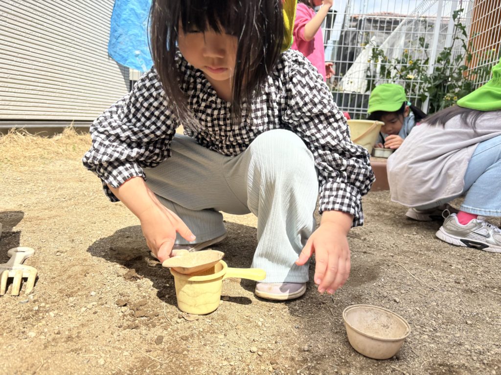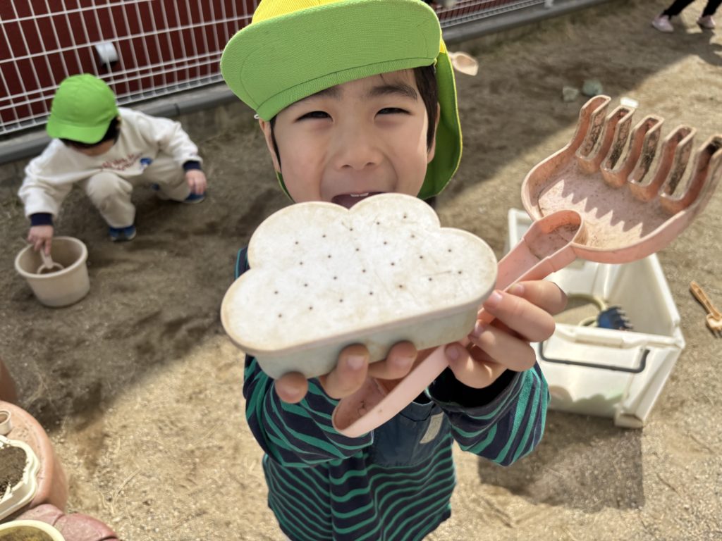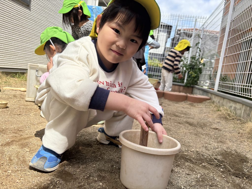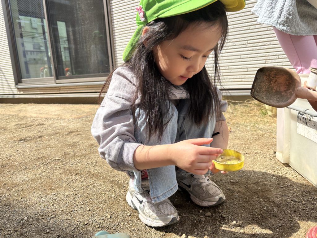 かもめ組は園庭遊びが大好き😊 朝の会が終わると、「おそといくー??」とみんなが聞いてくれます😊 お天気も良く、すぐに園庭へ出発! 新しいお友だちいるよー!!わたしのあかちゃんいるよ