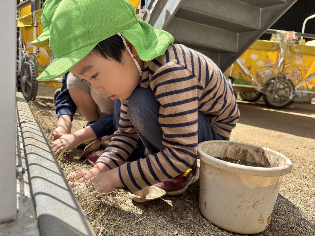 慣らし保育も少しずつ時間が増えてきました😊 くじら組は、朝から園庭へ出発!!春といえば、みんなが大好きな虫探しスタート🐜 らっこ組のお友だちも先生のお膝やハイハイで遊べる様になりました😊