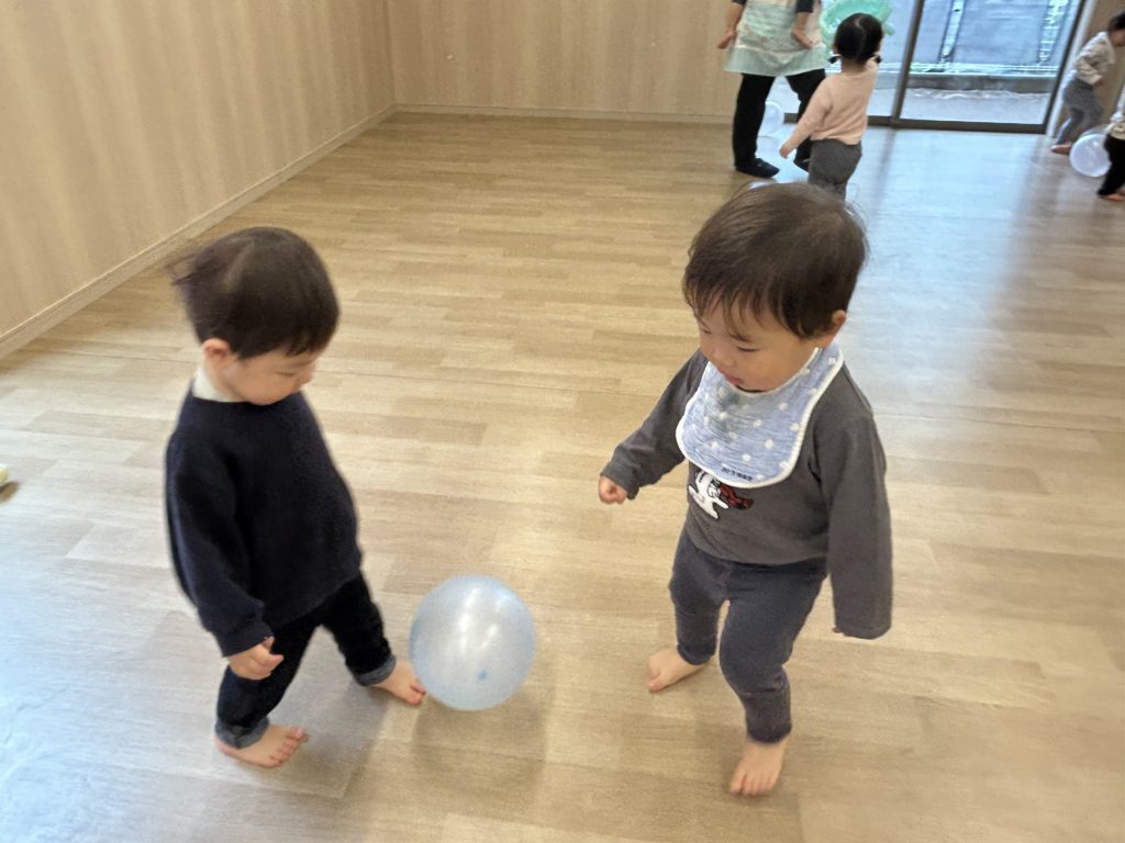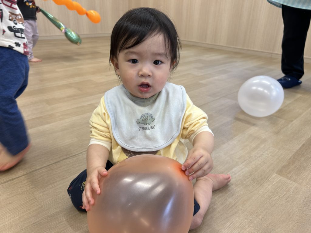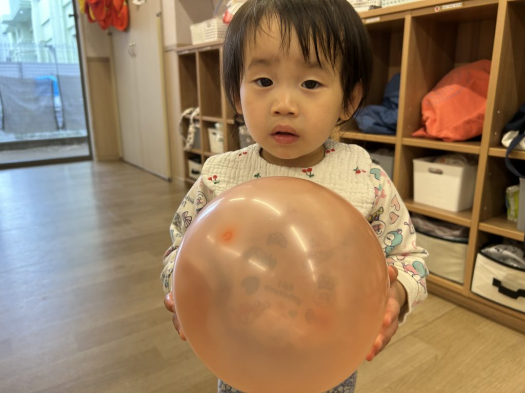 色んな形や色の風船を見つけて両手いっぱいに持ってみたり、足で蹴って遊びました😆