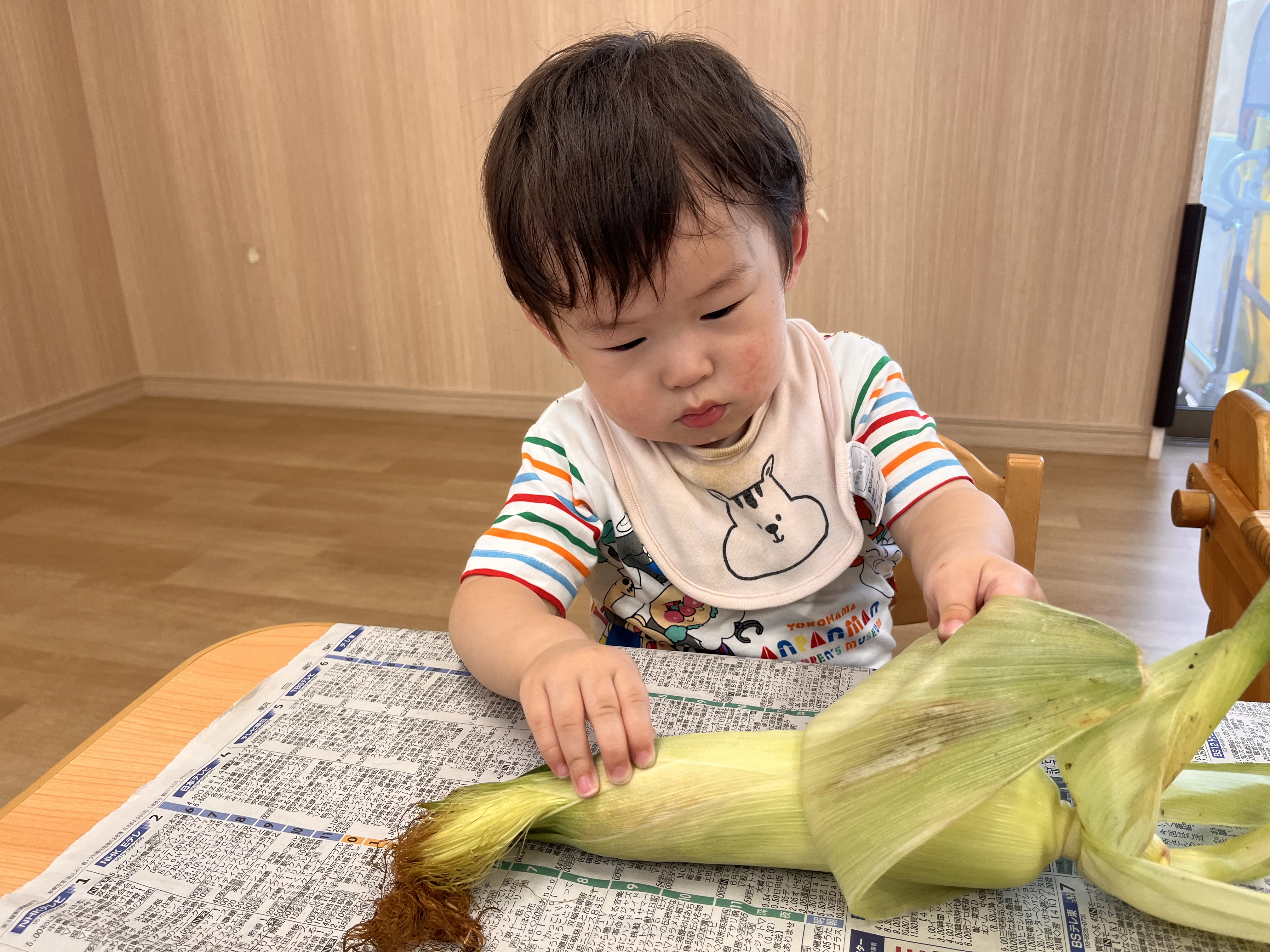 乳児クラスでは、とうもろこしの皮むきに挑戦しました! 皮むきに苦戦していましたが、とうもろこしが見えてくると嬉 […]