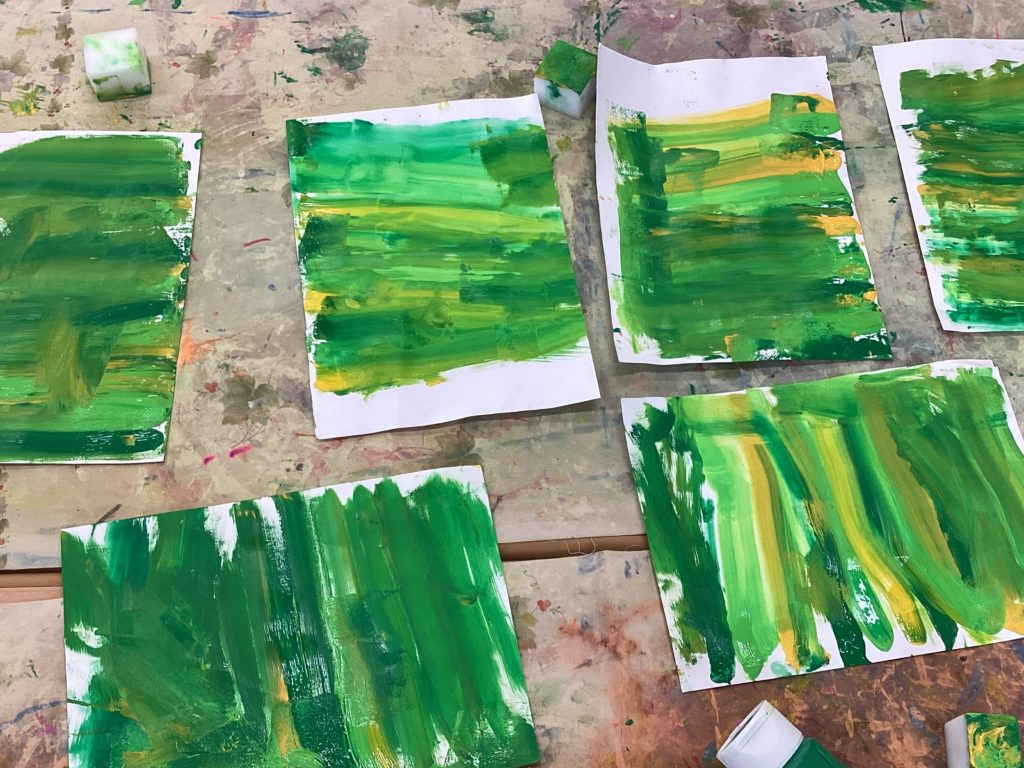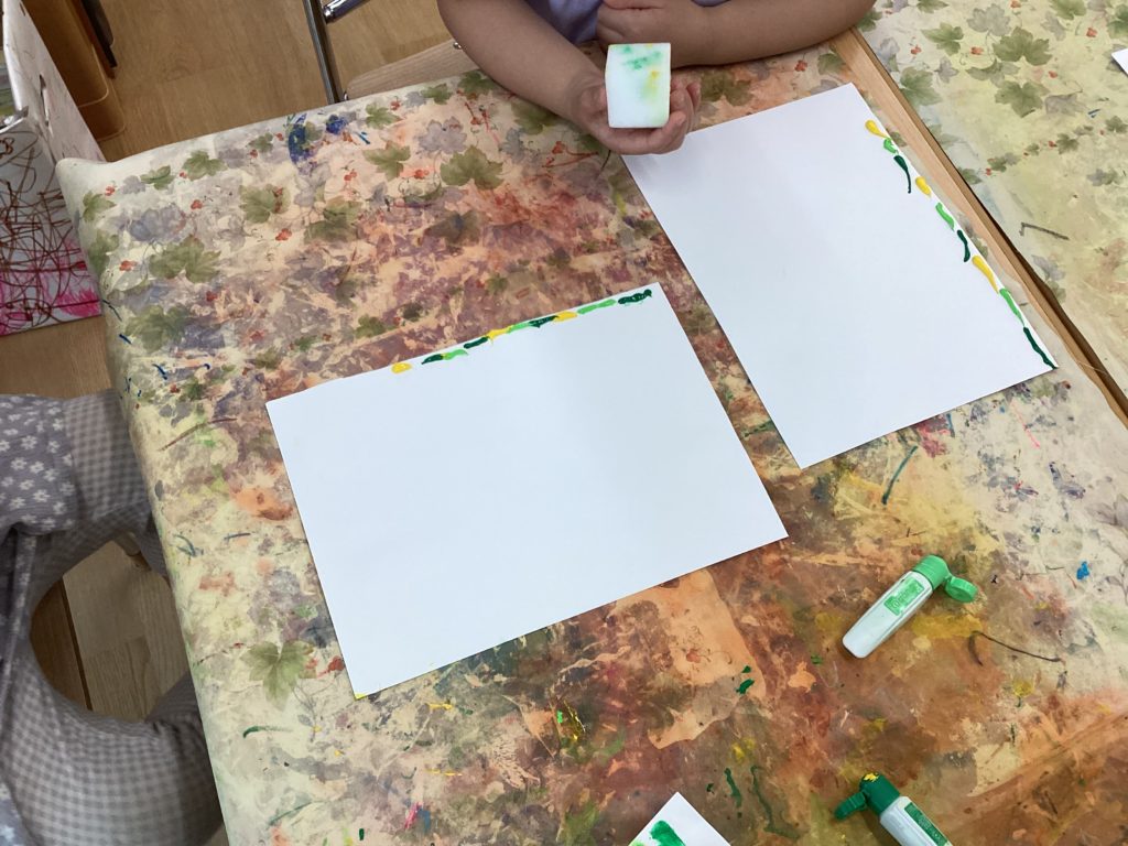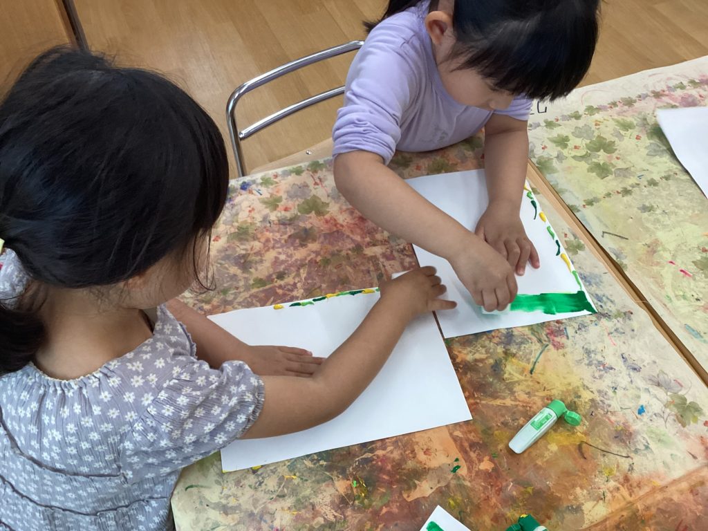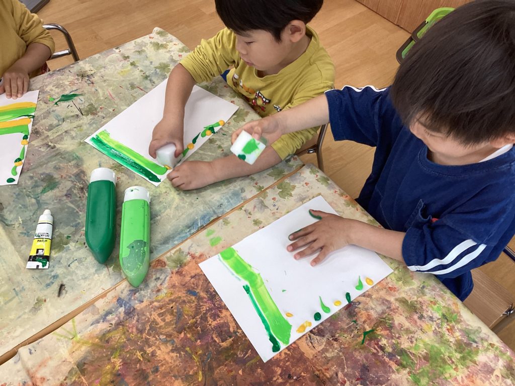 いつもとは少し違う絵の具の塗り方にみんな興味津々👀で真剣な表情で取り組んでいました!
