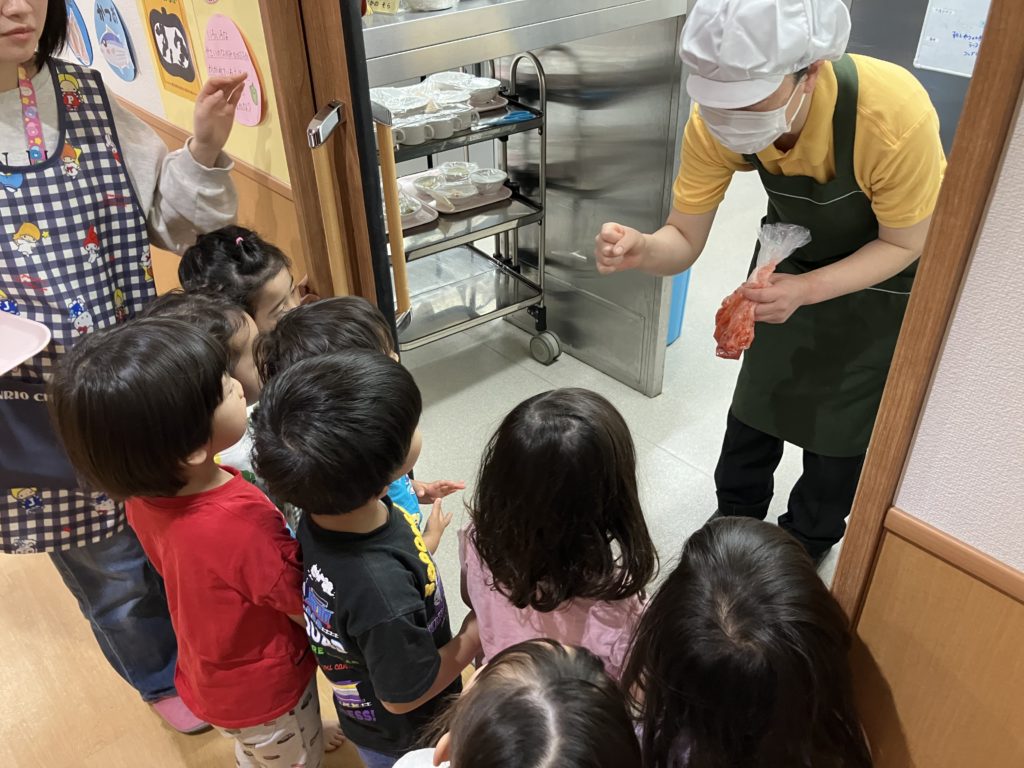 給食室にも行き、いちごジャムの作り方を聞いたり、「美味しいいちごジャムにしてね」とみんなでお願いもしました✨