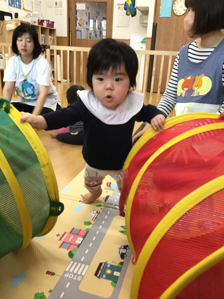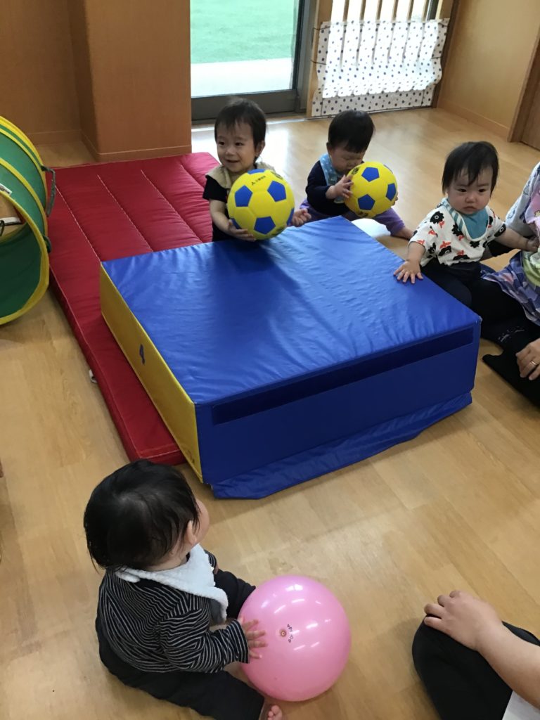 今日はマットやトンネル•ボールを使って身体を動かしました!