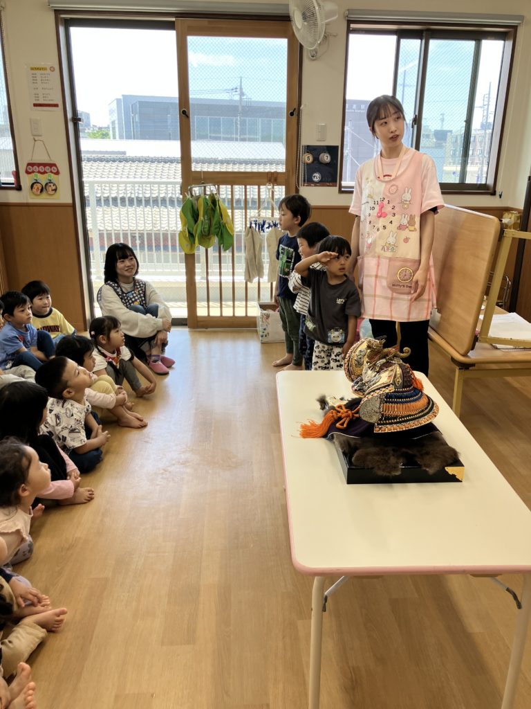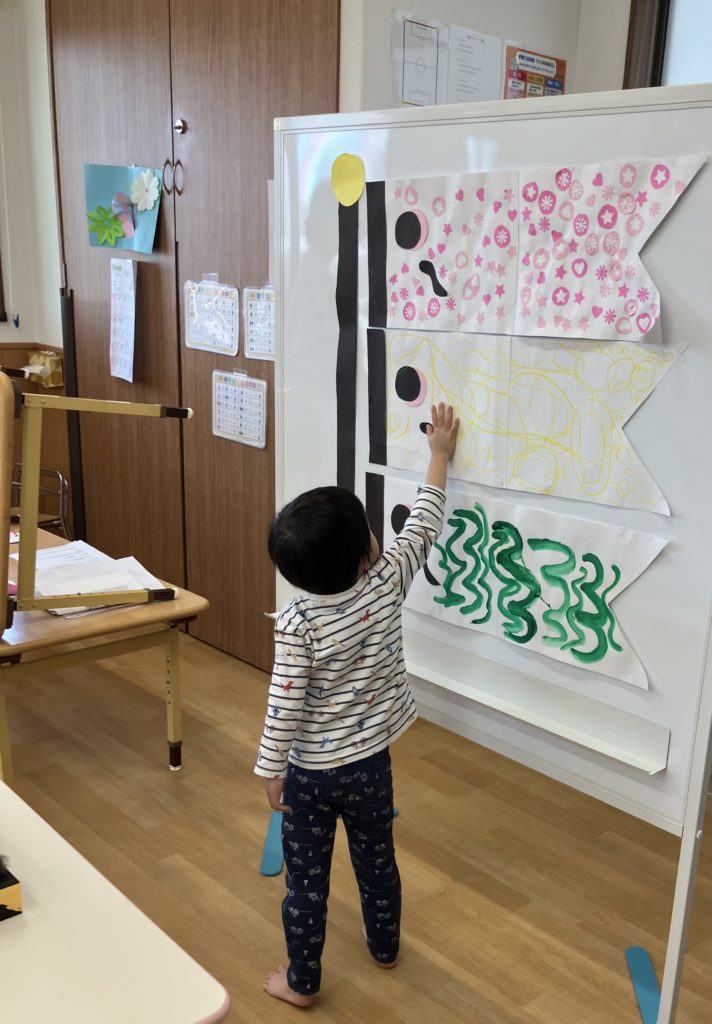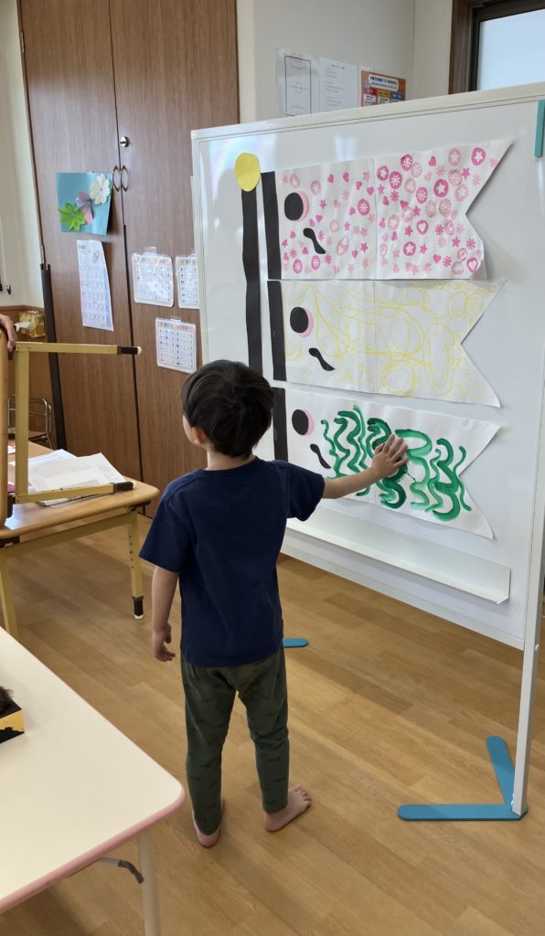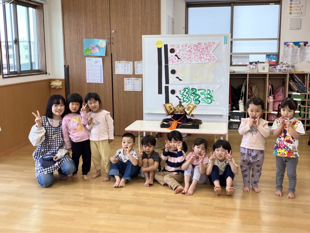 まず初めに「子どもの日」について説明をし、なぜ鯉のぼりを飾るのか等、皆で日本の文化について触れました♪