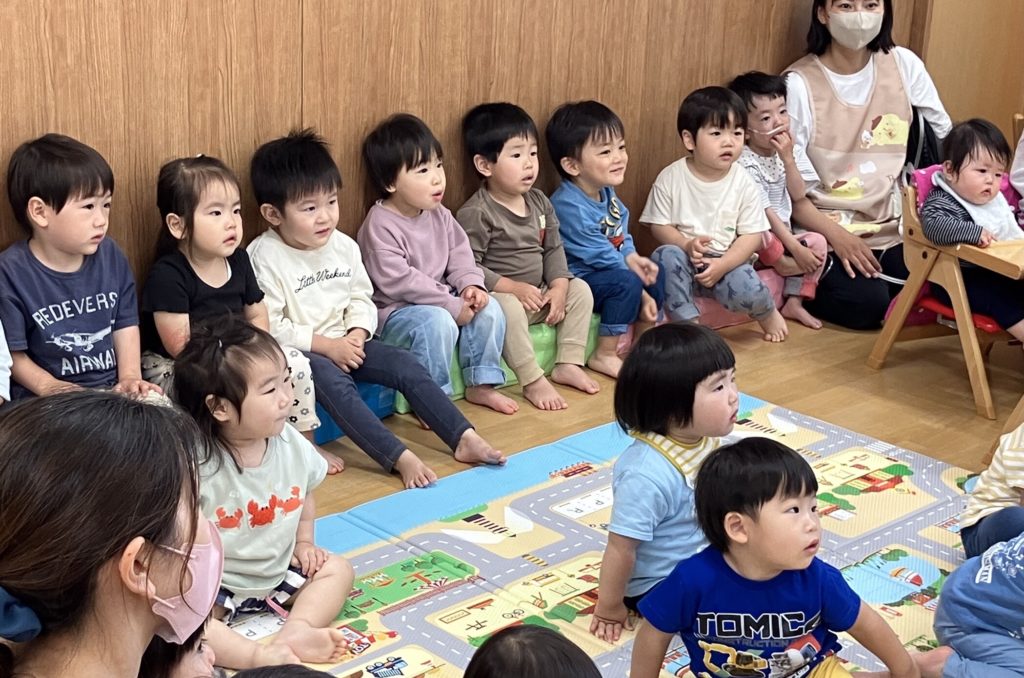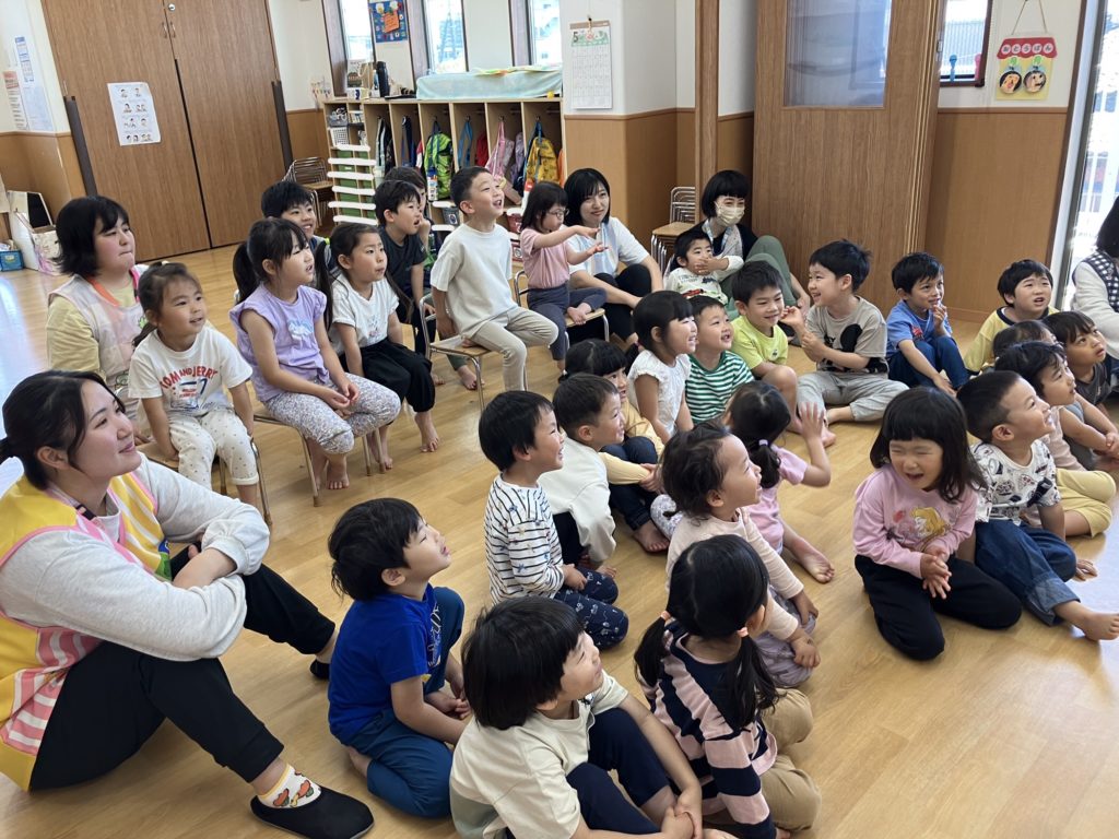 次に子どもの日会に向けて各クラス作成していた鯉のぼりを、皆の前で発表しました。「カキカキして作りました!」等、上手に発表出来ていましたよ✨
