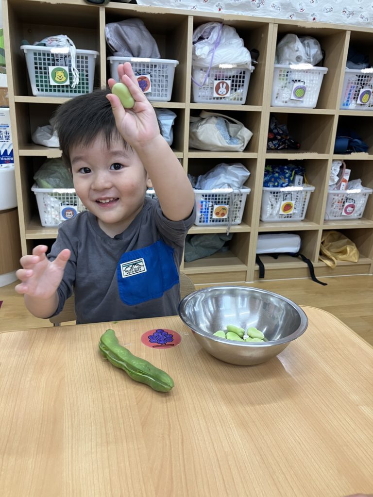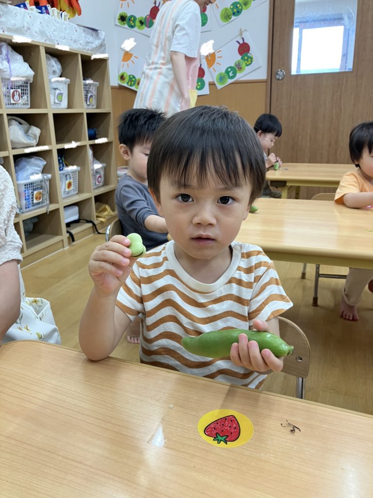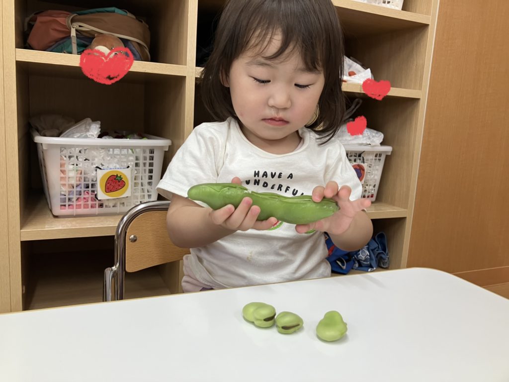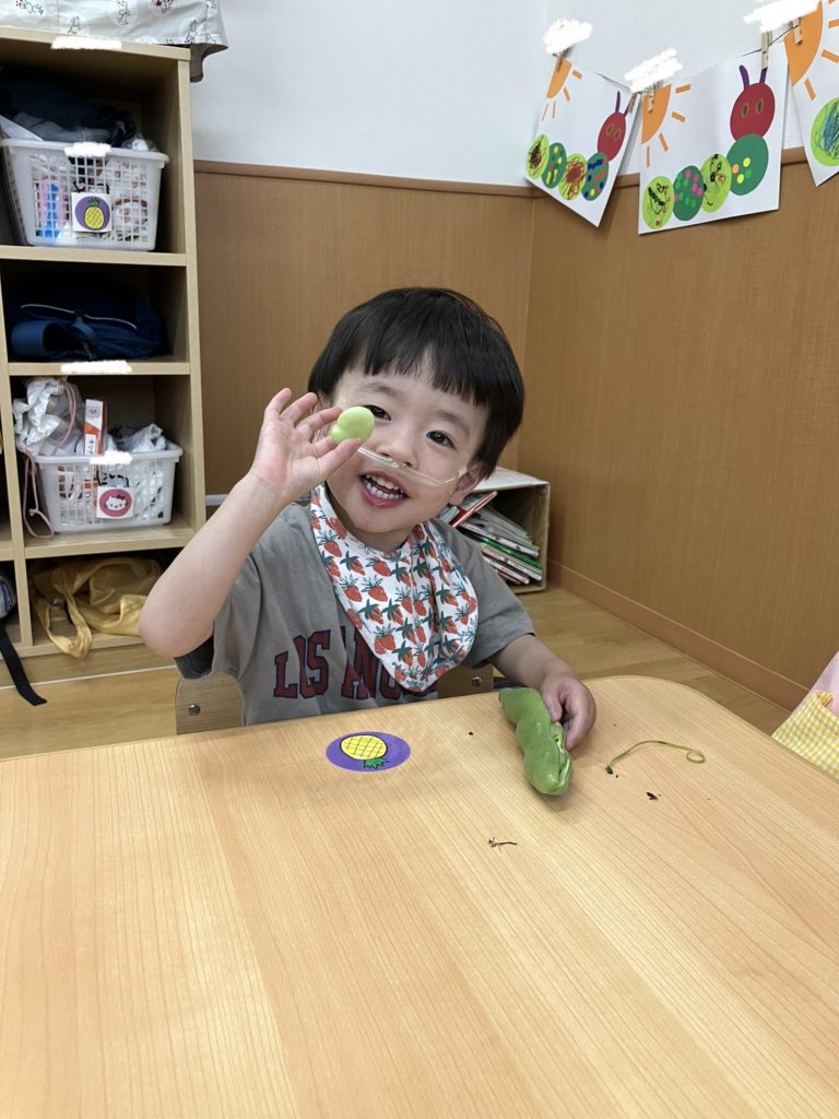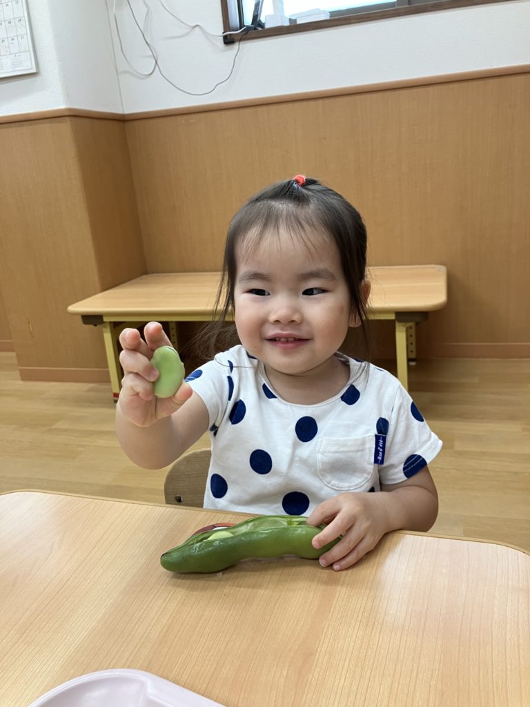 ペンギン組では、「そらまめくんのおやすみなさい」の絵本を読んだ後、そら豆の皮むきを行いました!!絵本で見たそらまめくんのベッドを思い出して「フワフワだね!」と言う子どもたち✨上手に剥く事が出来ました😊