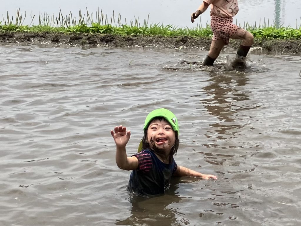 稲を植えた後は泥んこ田んぼの方へ移動し、泥水の中を思いっきり遊びました🫧