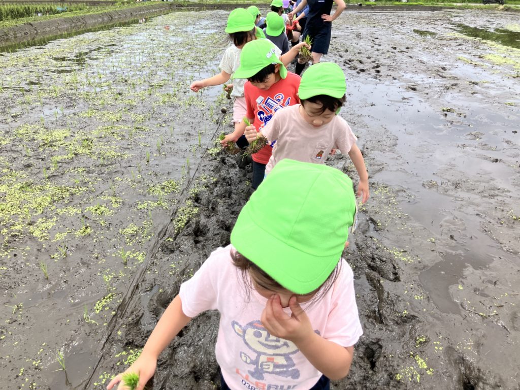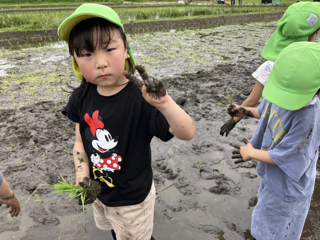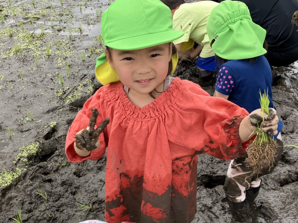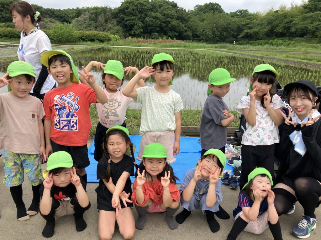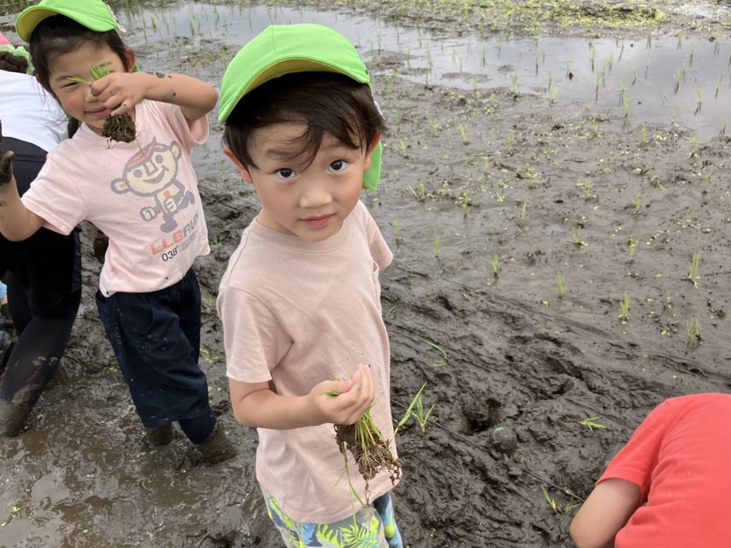 ずっと前から田植えのやり方を動画や紙芝居を見て、沢山予習していたので、今日が来るのをとても待ち遠しくしていたシャチ組さん💗