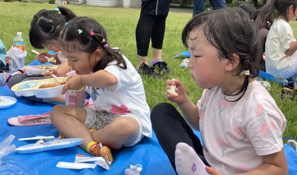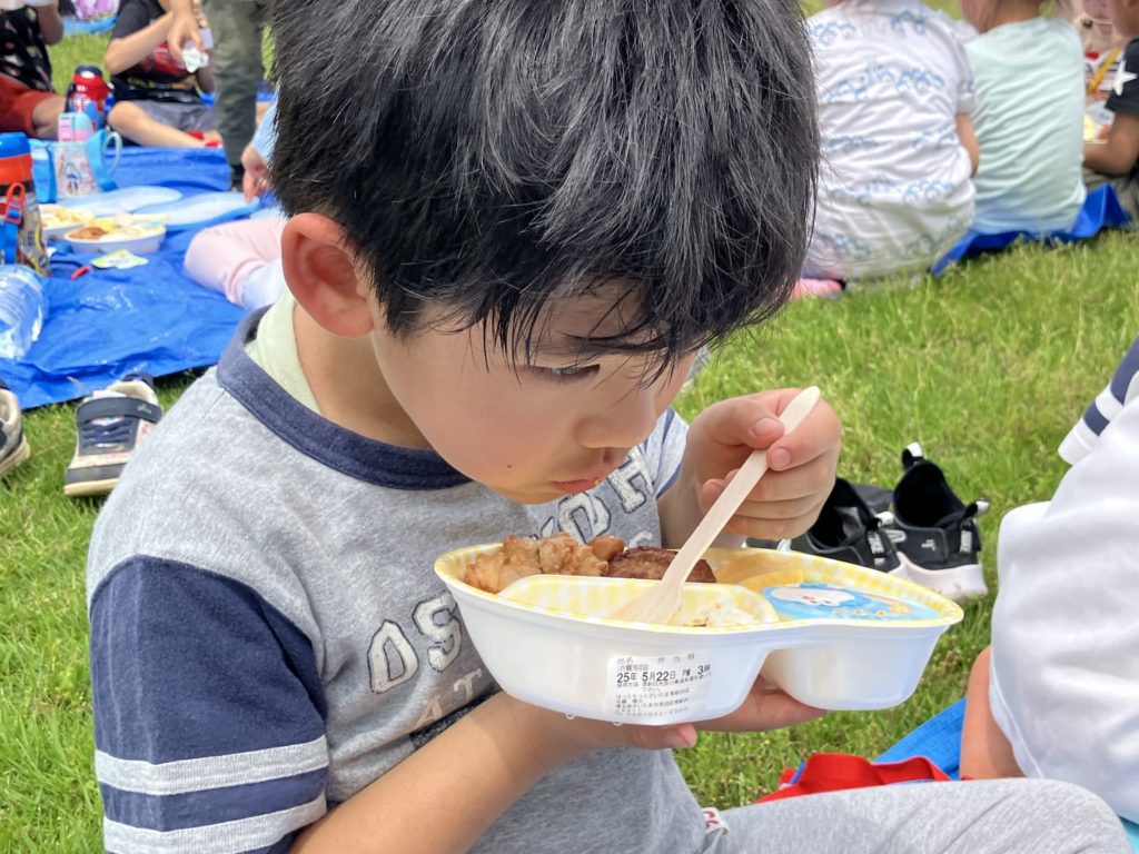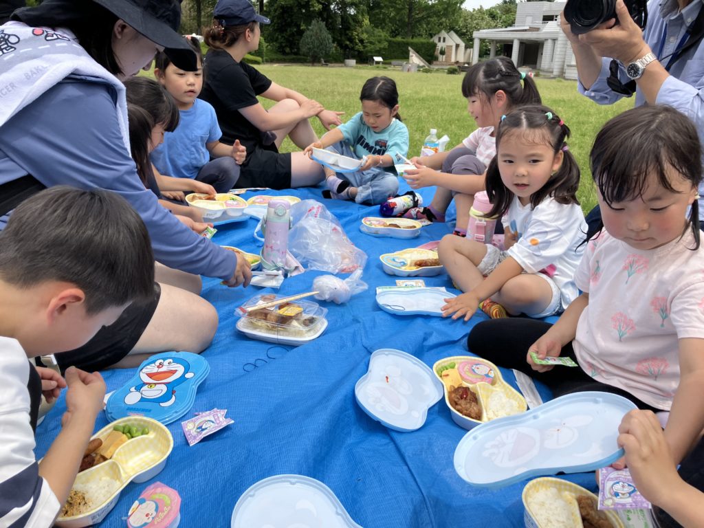 ドラえもん弁当をあっという間に食べて、少しだけ皆んなで芝生の上で遊びました😋🍽