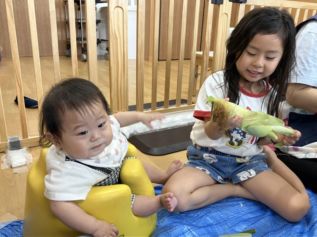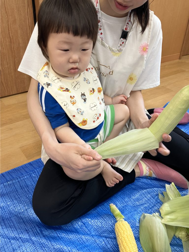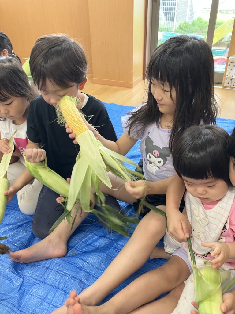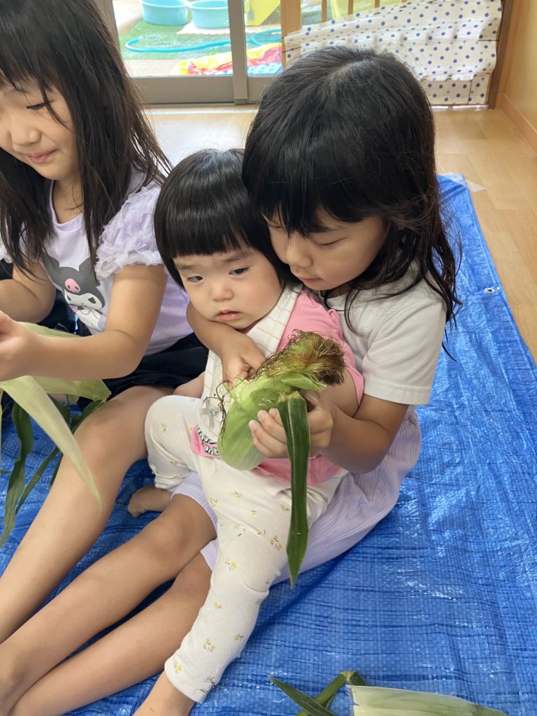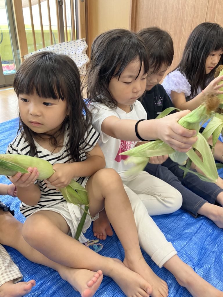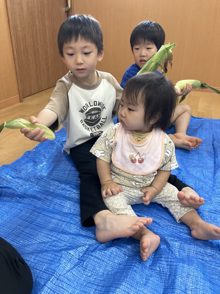 うぐす保育園 日進とうもろこしの皮剥き🌽